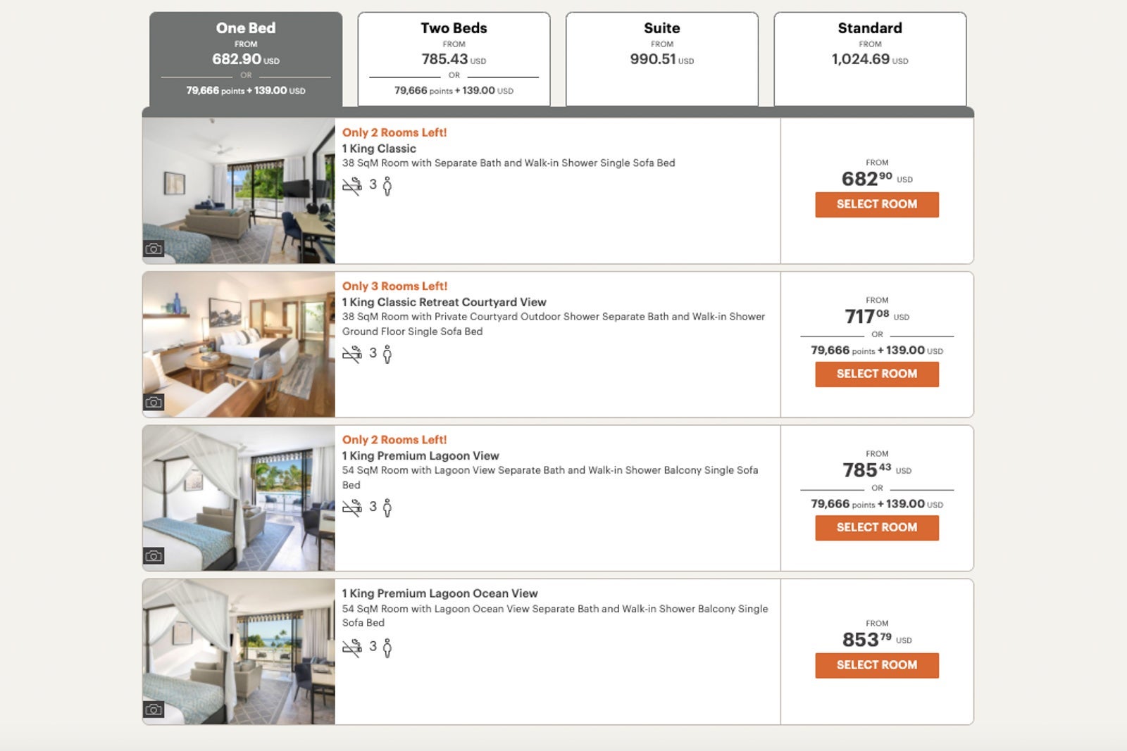 Starting rates at the 168-key Intercontinental Hayman Island hover at around AU$1,000 ($743) per night. The dates I was looking at over the month break between February and March were slightly lower than that, at AU$920 ($682) per night for a King Classic and AU$965 ($717) per night for a King Classic Retreat Courtyard View room. Both were also available for 99,000-100,000 points per night.