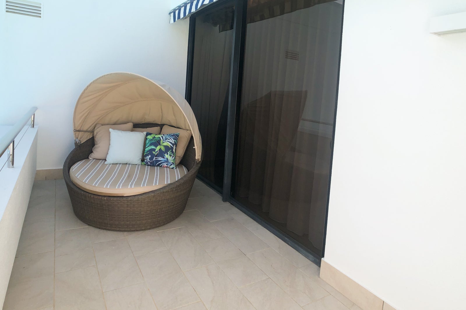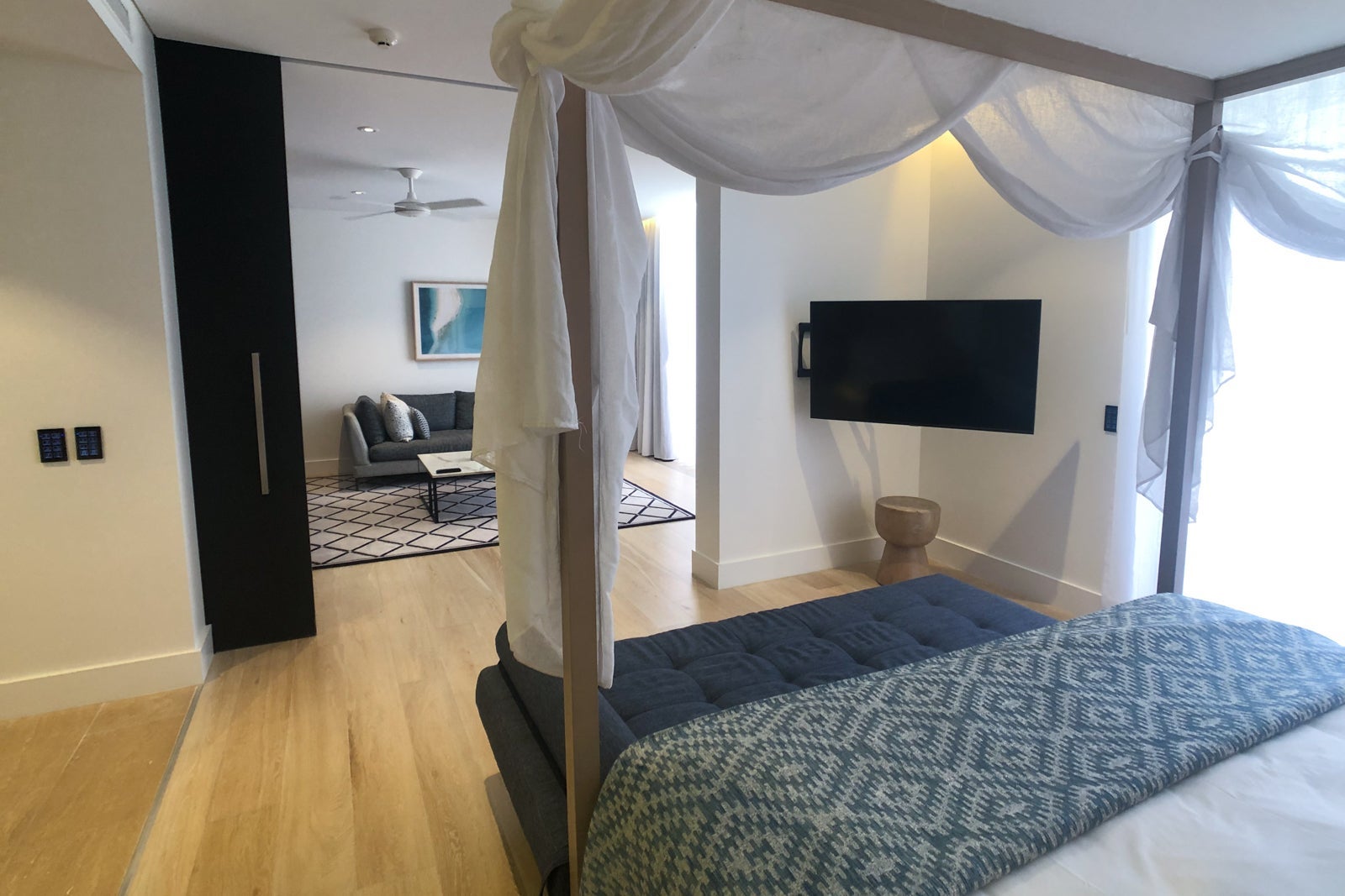 The ground-floor suites in this wing provide direct pool access so you can swim right out into the pool. Mine was on the third floor and had two balconies separated by a wall – one with a table and chairs that you could step out onto from the living room, and the other with a large daybed for two that you could access directly from the bedroom.