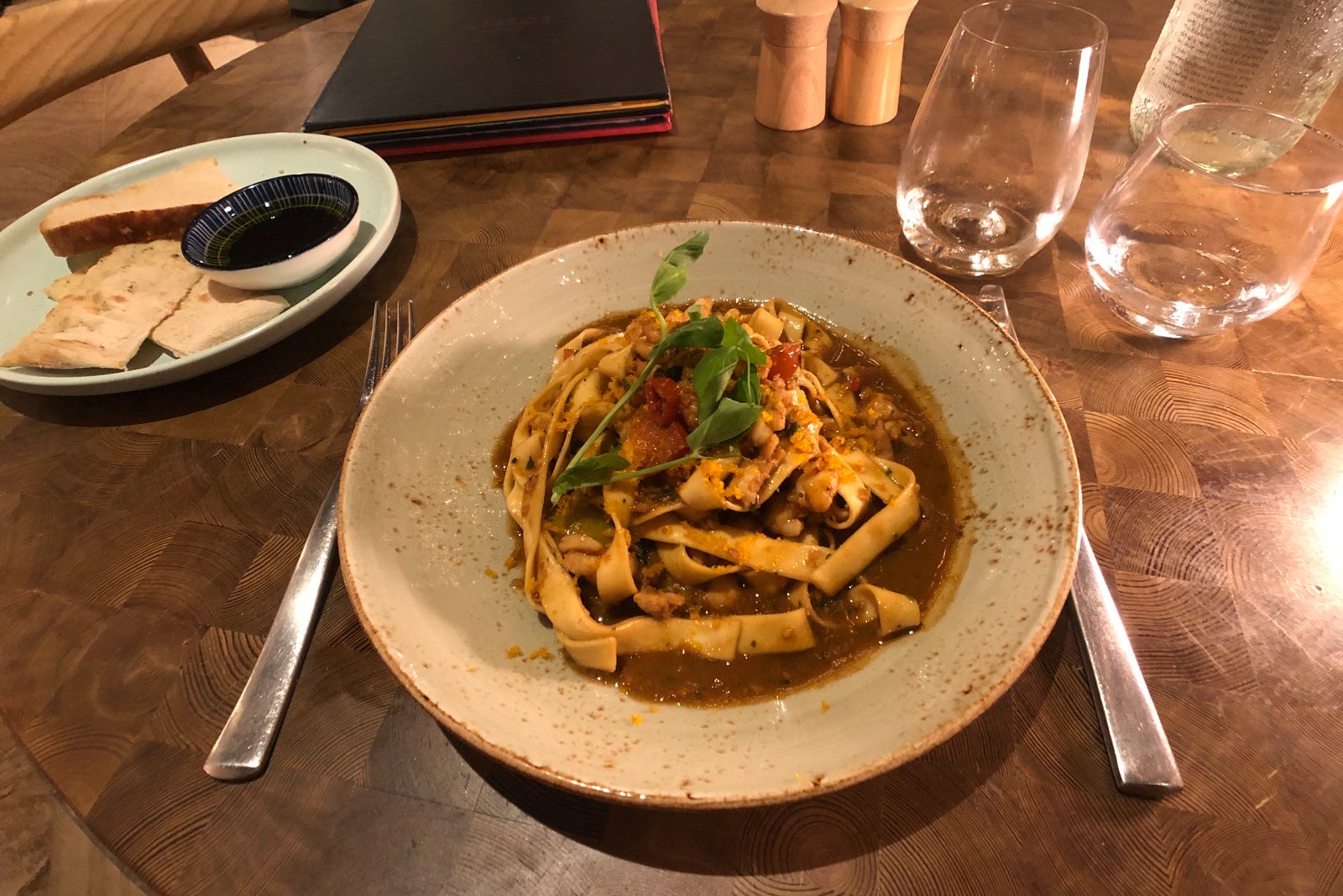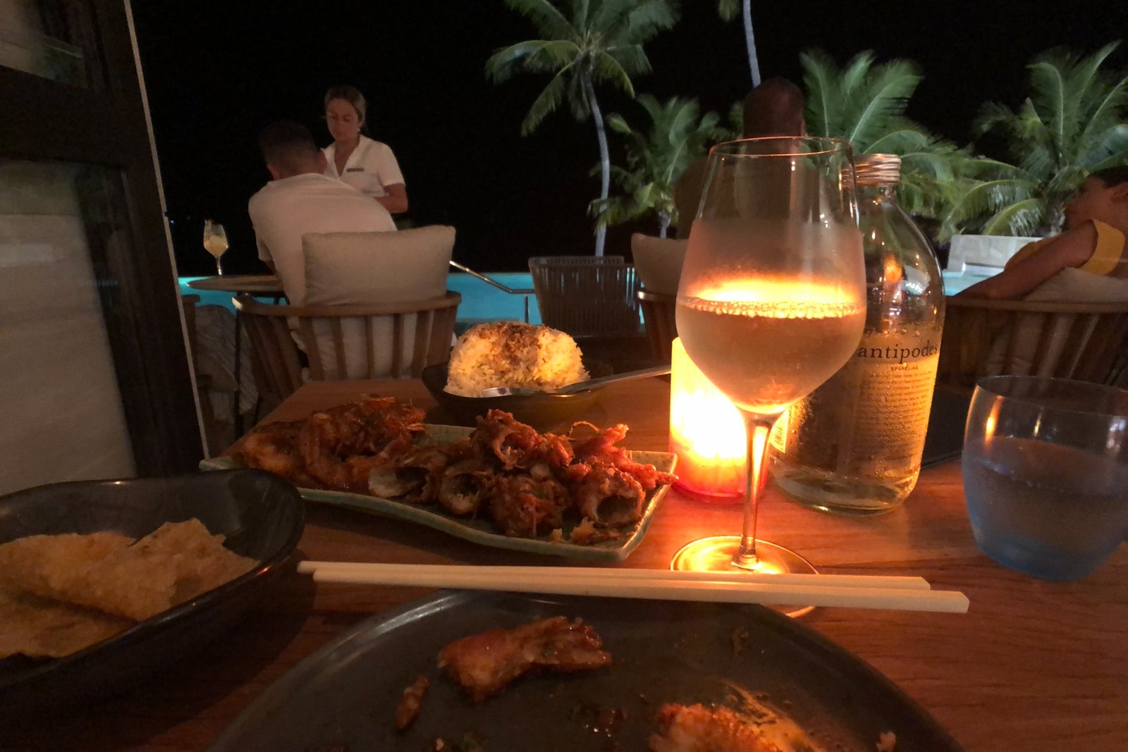 The first night of my stay, I had a decidedly less expensive supper at the resort's Italian restaurant, Amici. The draw is the made-to-order pizza fresh out of the oven, including the frutti di mare with prawns, calamari, octopus and cherry tomato (AU$32 - $24). However, there are more sophisticated coastal dishes like the crumbled tuna steak with radicchio and green beans in a tahini aioli and the grilled prawns with roasted tomato, saffron and Loukaniko sausage (AU$46 - $34). I turned to the pasta menu for something lighter and settled on the tagliatelle with Moreton Bay bug tails in a flavorful sauce of lemon, garlic, chili and briny shaved bottarga (AU$46 - $34). Wines by the glass, which mostly came from Europe, as well as Australia and New Zealand, were expensive, but not unreasonably so, and ranged AU$13-AU$25 ($10-$19).