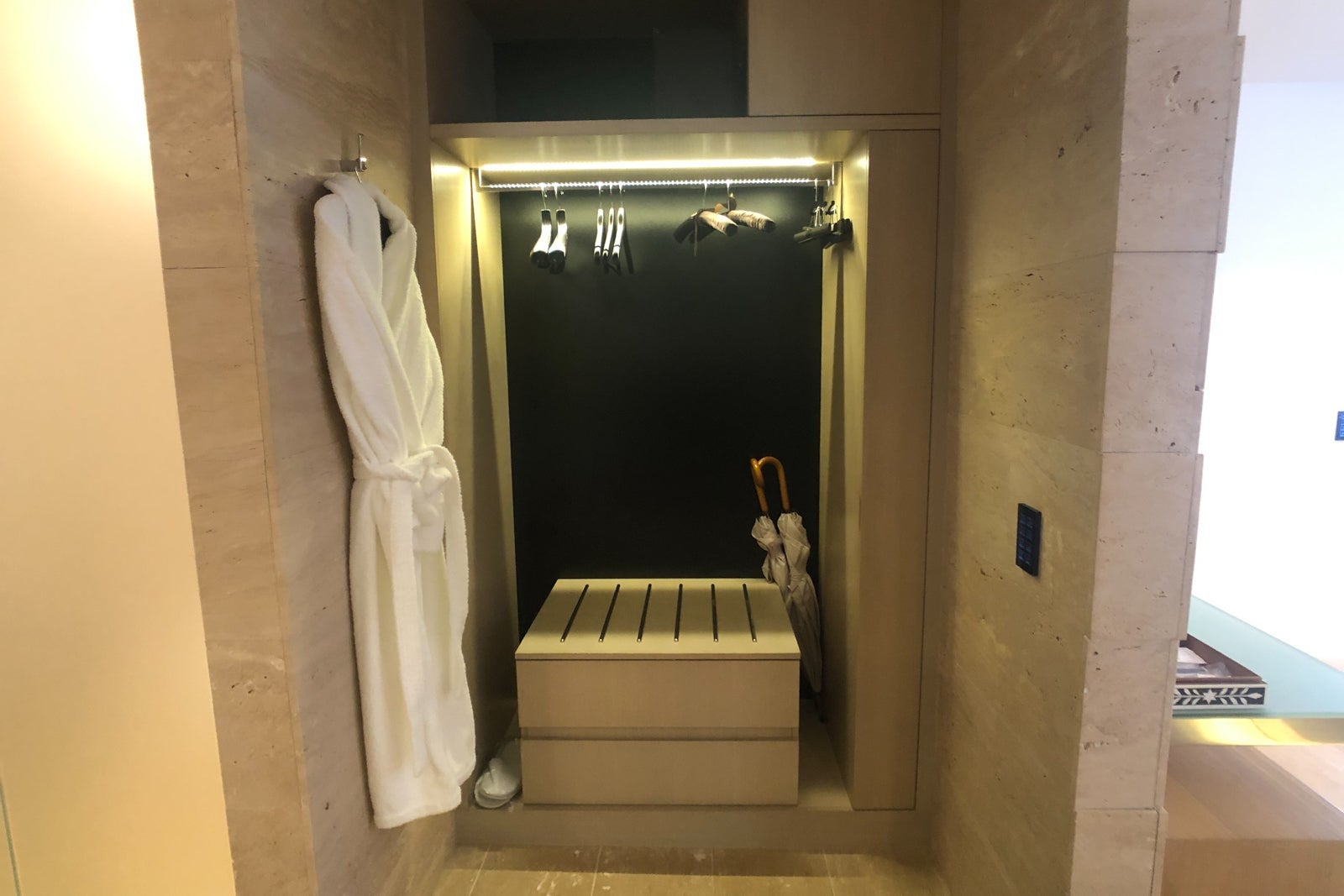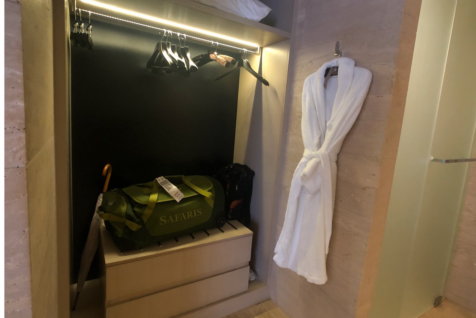 Stepping past those, I came to the dual closet area with drawers and a shelf for suitcases as well as racks for hanging clothes.