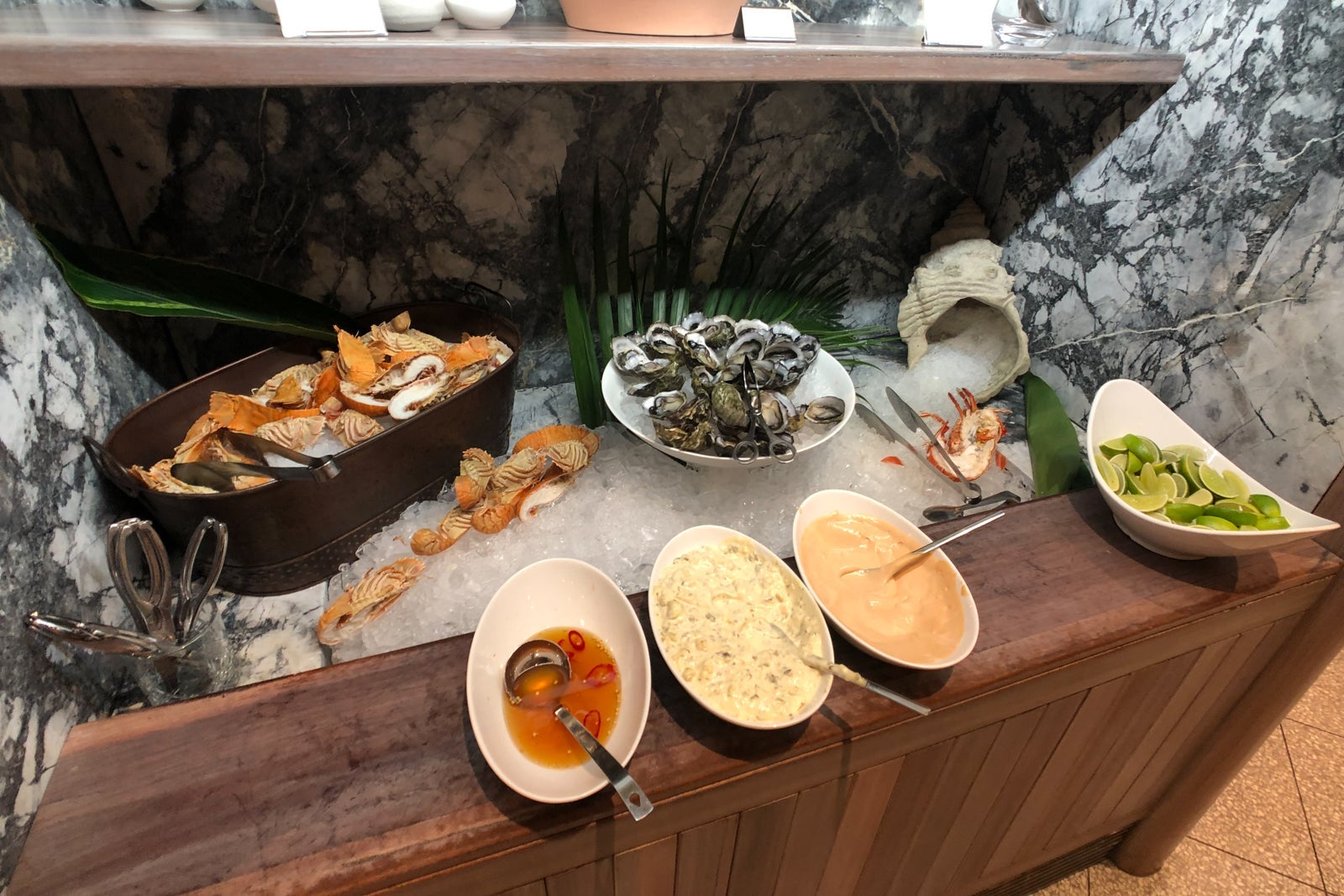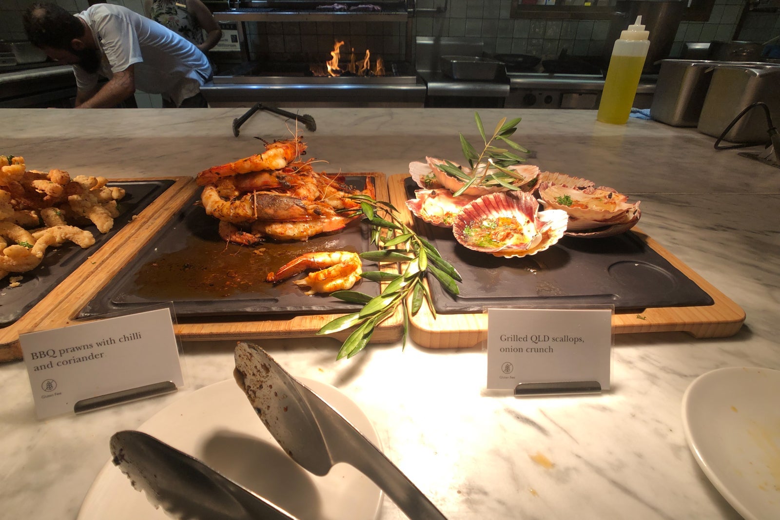 I also ate dinner at Pacific one night. It was another extensive buffet with a selection of seafood such as oysters, prawns, fish ceviche, Moreton Bay bugs and various salads. The hot station served grilled meats like za'atar-crusted lamb chops, spatchcock chicken, shrimp, Black Angus rib-eye and fresh-caught whole fish along with sides like corn on the cob and roasted potatoes.