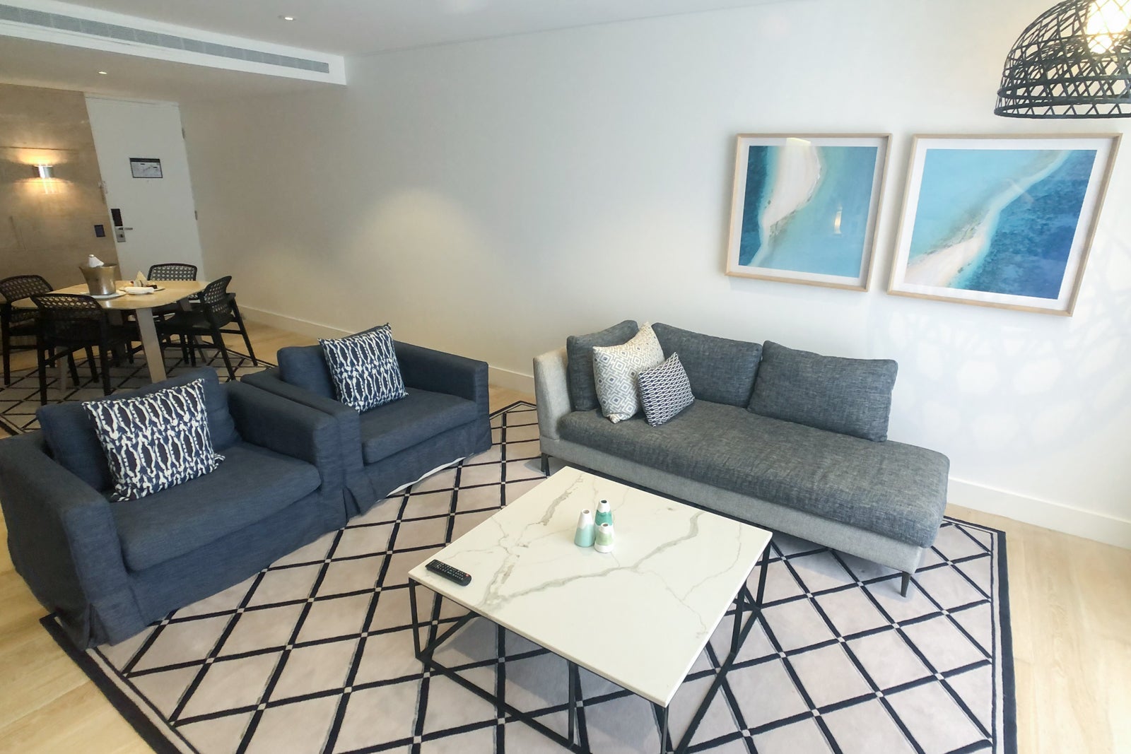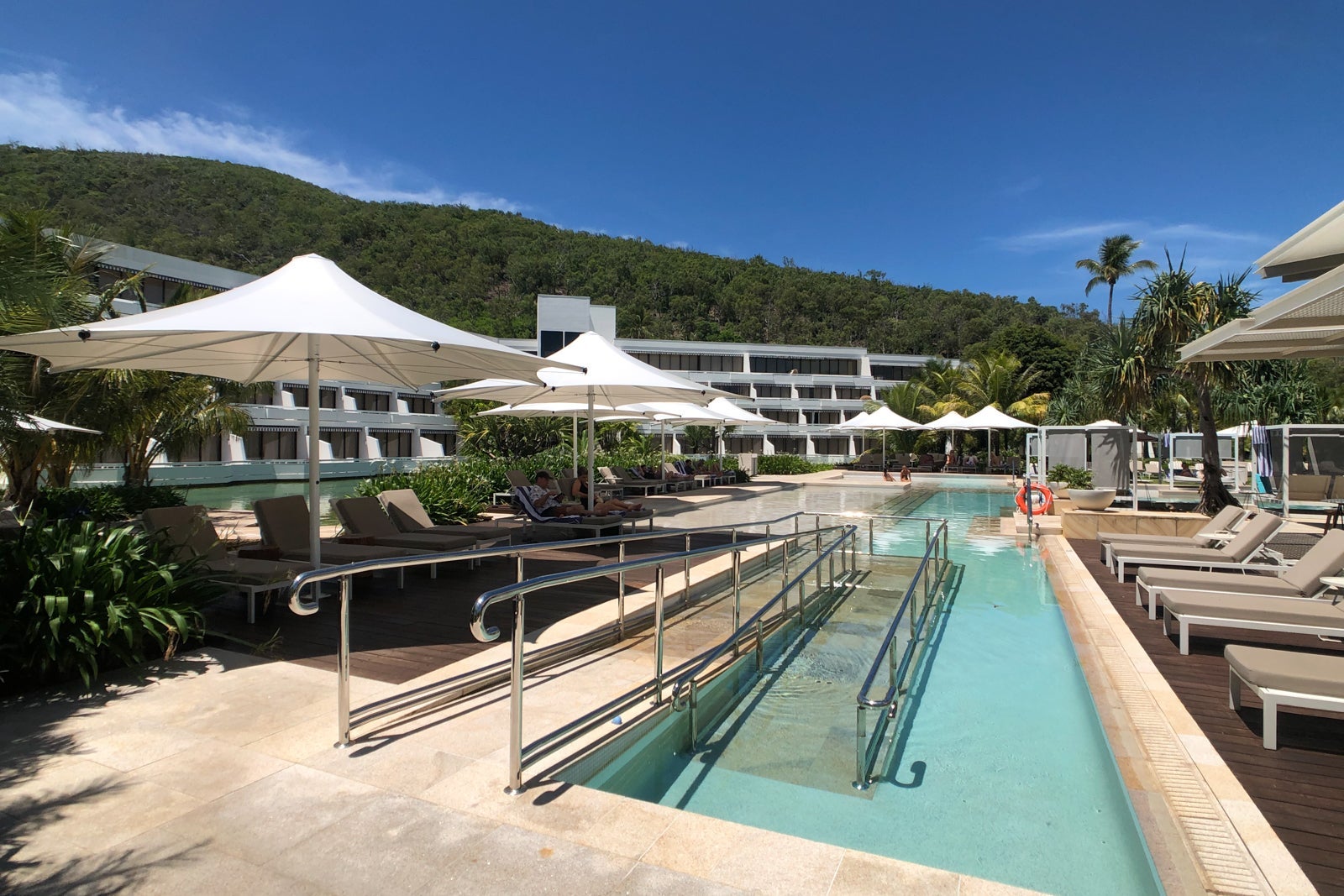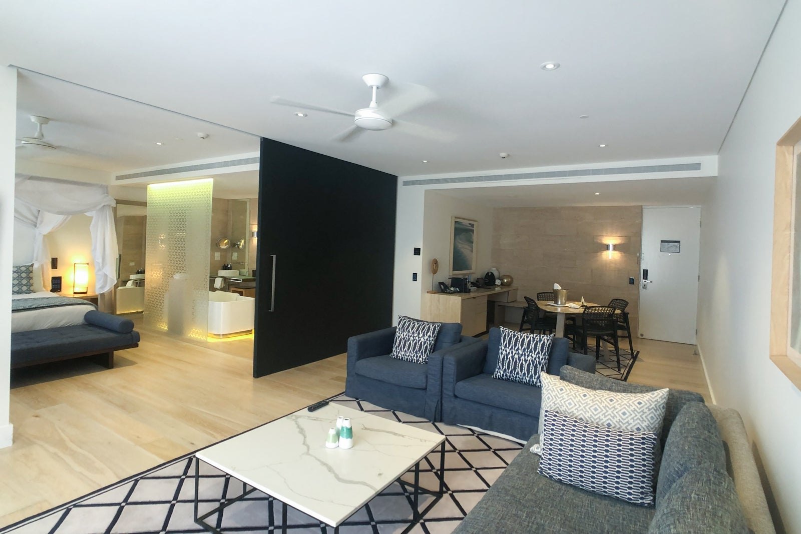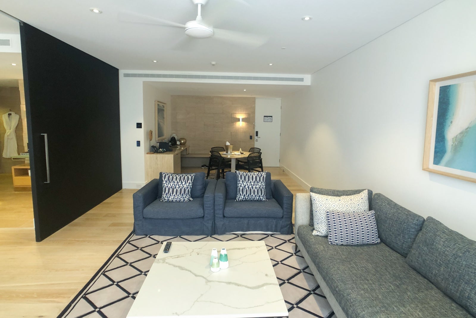 The weather was warm and breezy for both legs of the journey, providing the perfect welcome and send-off for my time on Hayman. When I arrived at the resort's marina, I was greeted by the front desk manager, who gave me a brief tour of the property and then showed me to my room, which had been upgraded to a one-bedroom ocean and pool view suite thanks to my IHG Platinum elite status. That would have cost AU$1,400 ($1,040) per night, nearly a $400 premium on the room I'd originally booked.