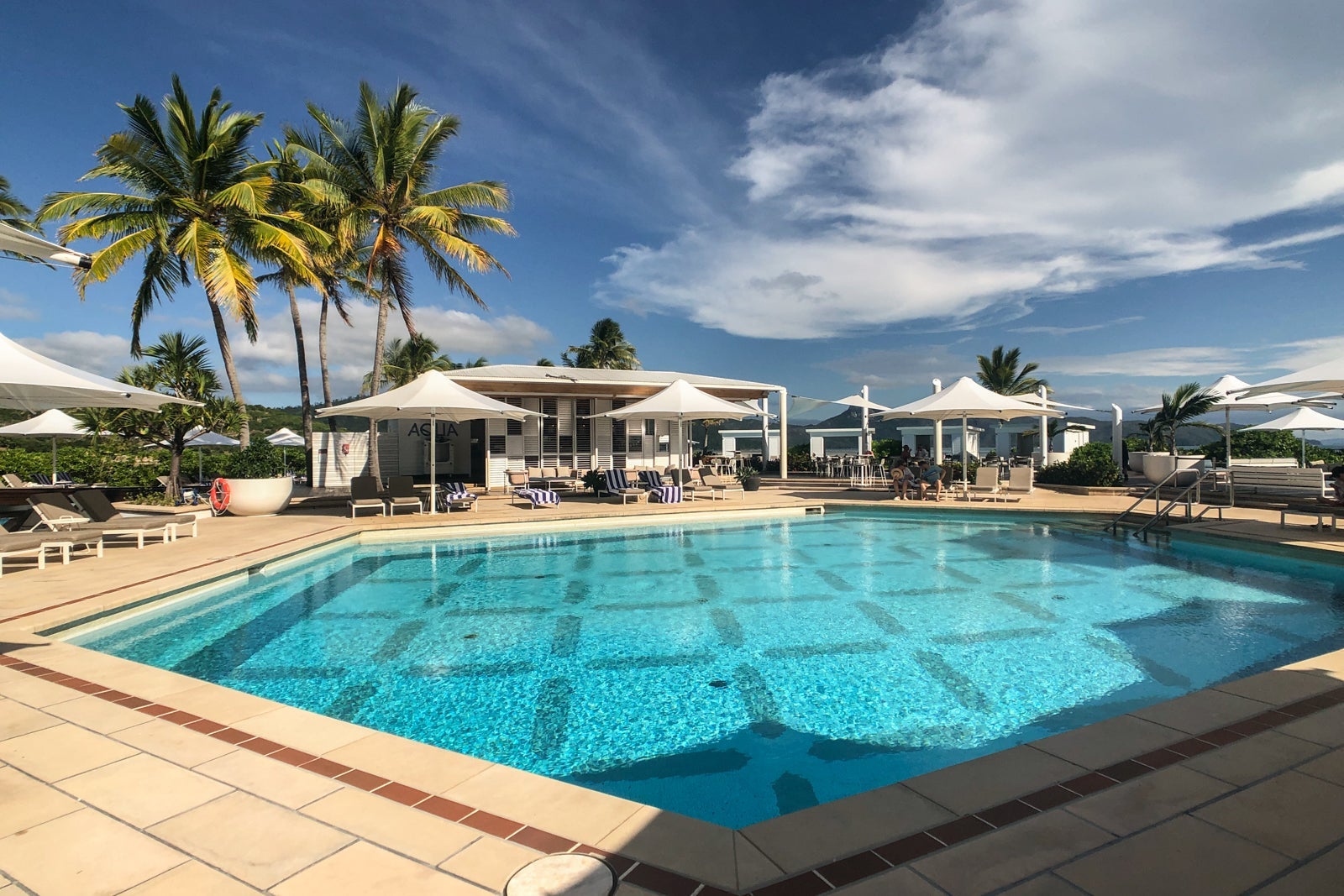 Let's start with the pools. There is a humongous one in the Pool Wing that encircles an island where you'll find another pool and Aqua, and is traversed by a few walkways. The far side toward the beach has loungers and private cabanas for rental, while the little pool in the middle is good for families with small children since it is so self-contained.