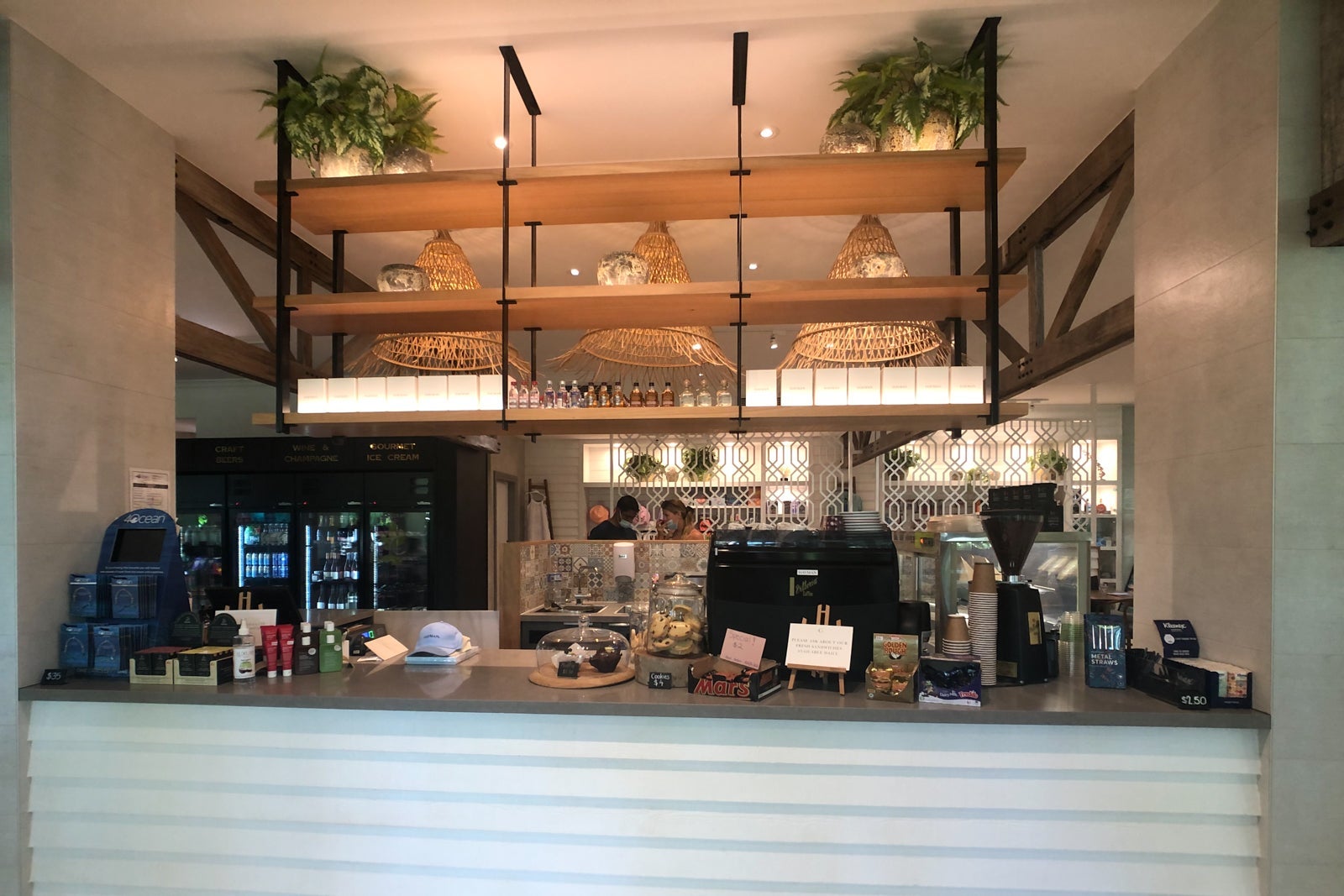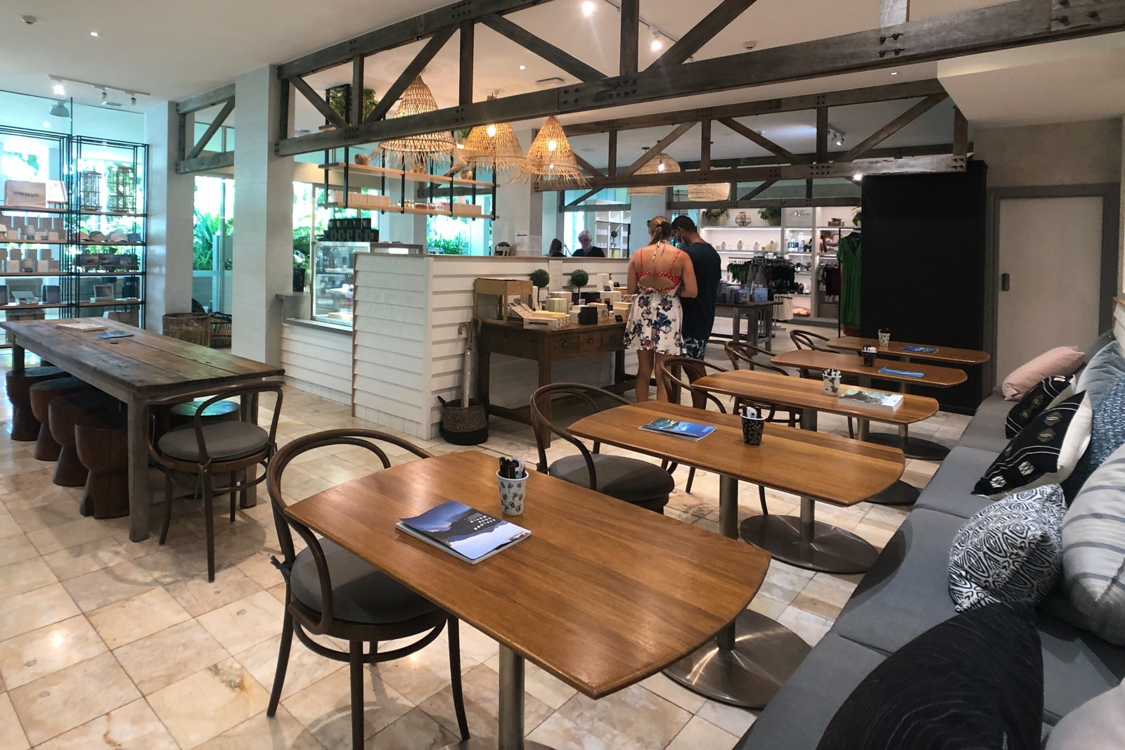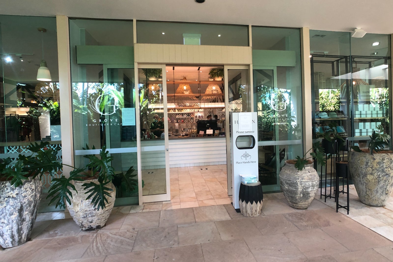 Finally, the resort has a little casual café between the lobby and the pool wing called the Grove Boutique and Café. There you can get coffee drinks and light bites like sandwiches while also stocking up on trip essentials like toiletries and reef-safe We Are Feel Good Inc. sunscreen or various items of apparel plus hats and sunglasses.