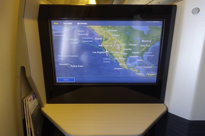 The flight also featured Wi-Fi from T-Mobile. JAL cardholders got a 10% discount, but otherwise the passes cost $18 for a 24-hour plan with no data limit, $10.15 for an hour, or $14.40 for three hours. I had a lot of work to do, so I purchased a pass, and while the Wi-Fi was good enough to check email and load basic sites, I couldn't do much else, so I wouldn't recommend buying a pass unless you absolutely have to.
