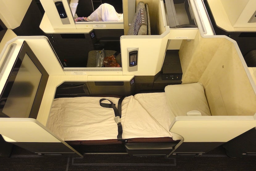 When you're ready to go to sleep, the flight attendants will lay out Airweave mattress pads that are breathable and keep you cool as you sleep. I found it comfortable and was glad to have something to put down between my body and the seat itself as I slept.