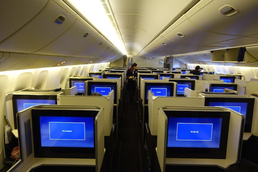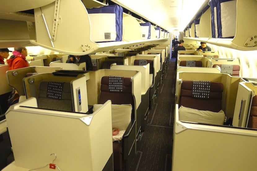 One of the things I love about Japan Airlines is how orderly everything is — including the boarding process. I got to the gate 15 minutes before boarding was even supposed to begin and the gate agents were already lining people up by cabin. I was first in the business-class line, hoping to get some shots of the cabin without other passengers in it.