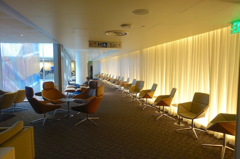 The areas with chairs and ottomans around the perimeter of the lounge are also nice for taking a quick nap or working quietly.