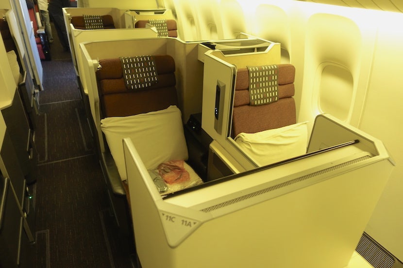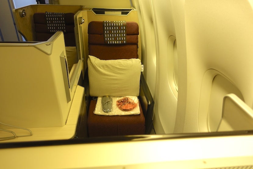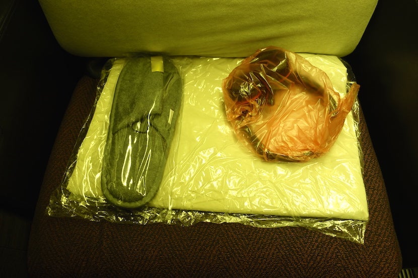 Waiting for me when I boarded were a set of slippers, a light blanket and a full-size Airweave pillow that molded to my back.