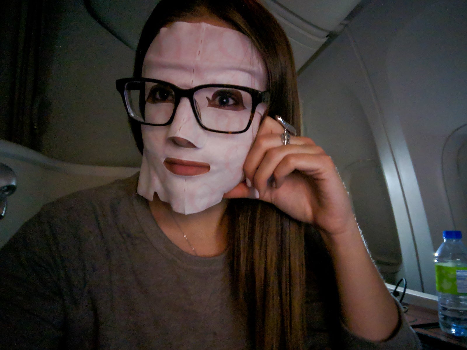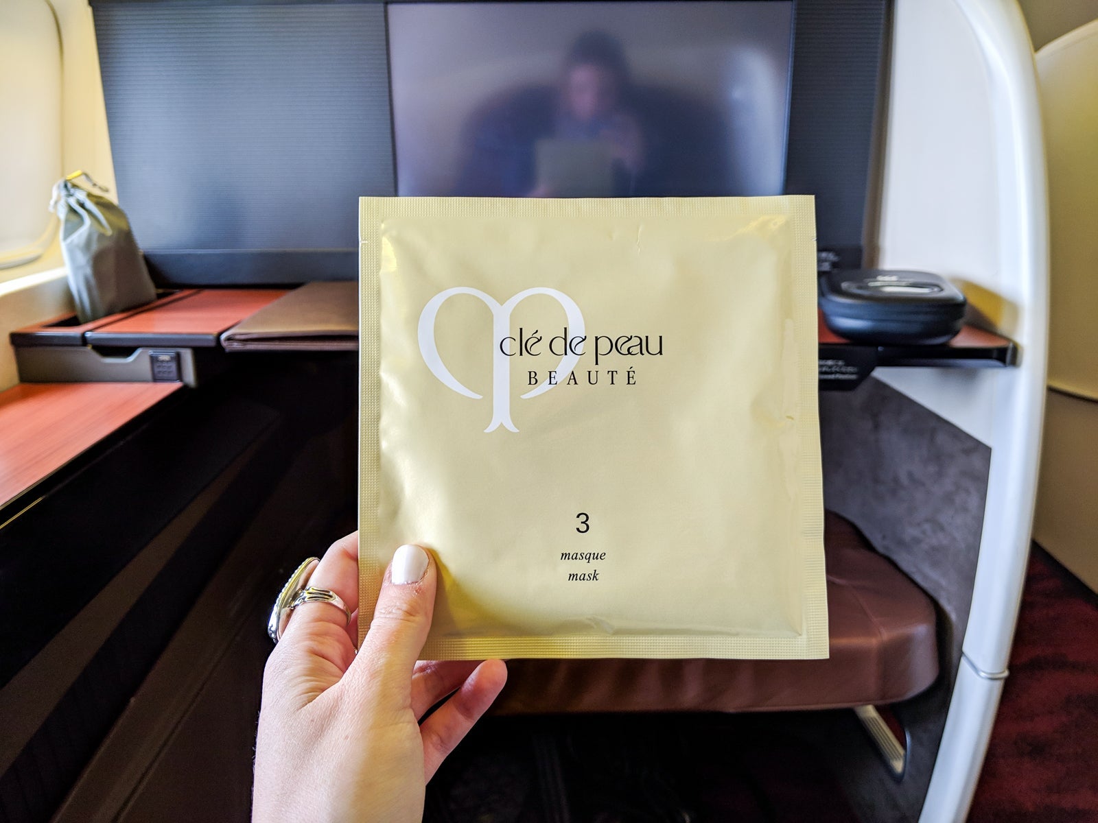 Yup, a face mask! I usually bring my own on long-haul flights — the stale air does wonders for your skin, let me tell you — so it was exciting to see such a thoughtful amenity here. Between that and my comfortable pajamas and slippers, well, I had my own little spa in the sky.