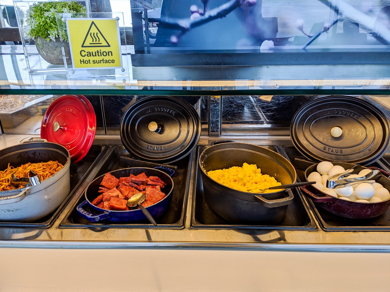 The hot bar had scrambled and hard-boiled eggs, turkey bacon and lo mein. Interesting choices, huh?