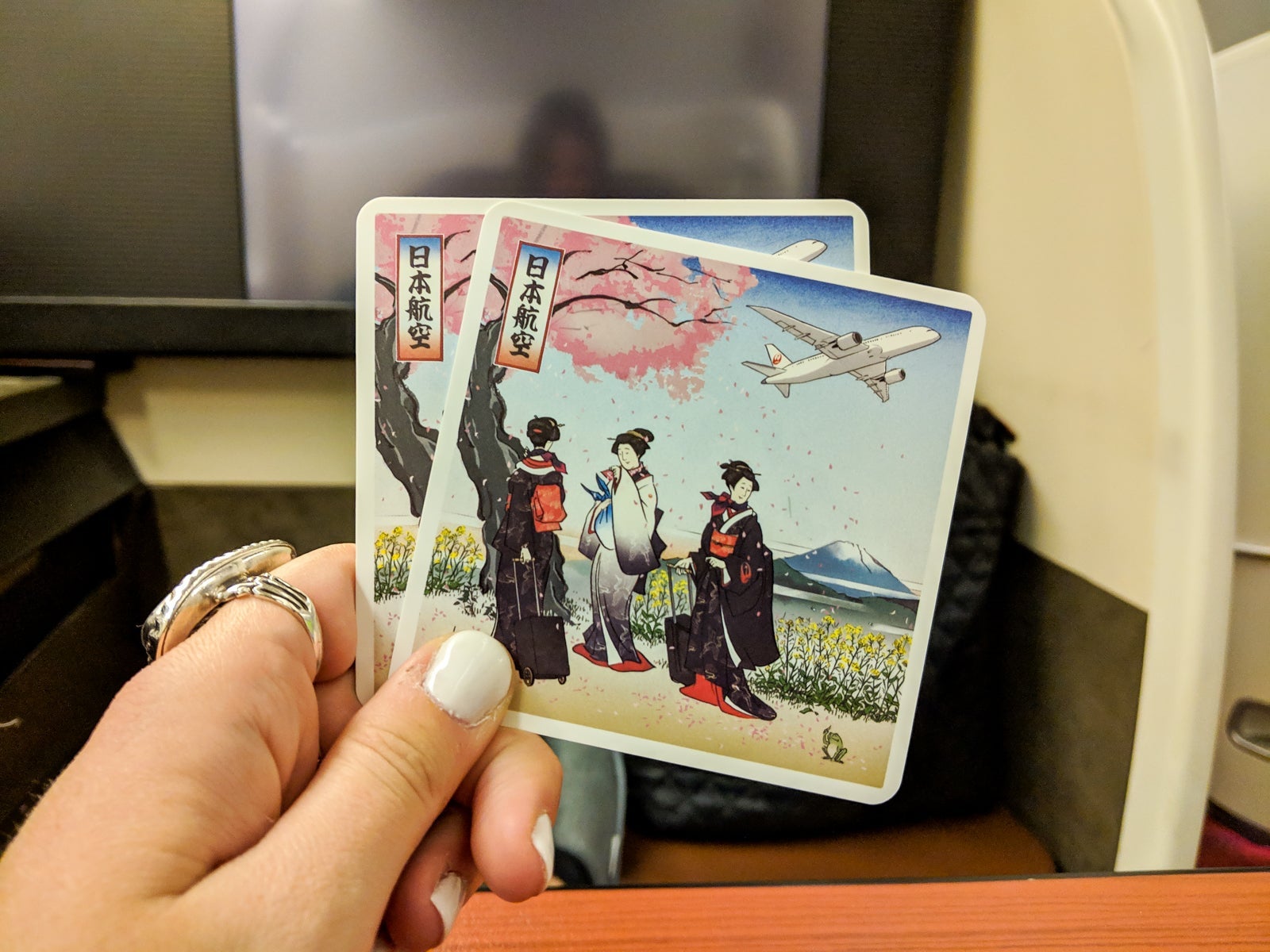 The service was hands down the highlight of my experience on Japan Airlines (and throughout my vacation in Japan in general). From the second I got on the plane, the flight attendants had a genuine smile on their faces and attended to my every need. Once you go to Japan, you'll understand, but the hospitality in this country is truly top-notch. This flight was no exception. When I told them this was my first time going to Japan, their faces lit up as they asked me what I was doing and if I needed any recommendations. One of the flight attendants even gave me beautiful coasters to commemorate the flight — they're still on my desk! Minus some minor delays with some of the food, the service was nothing less than stellar.