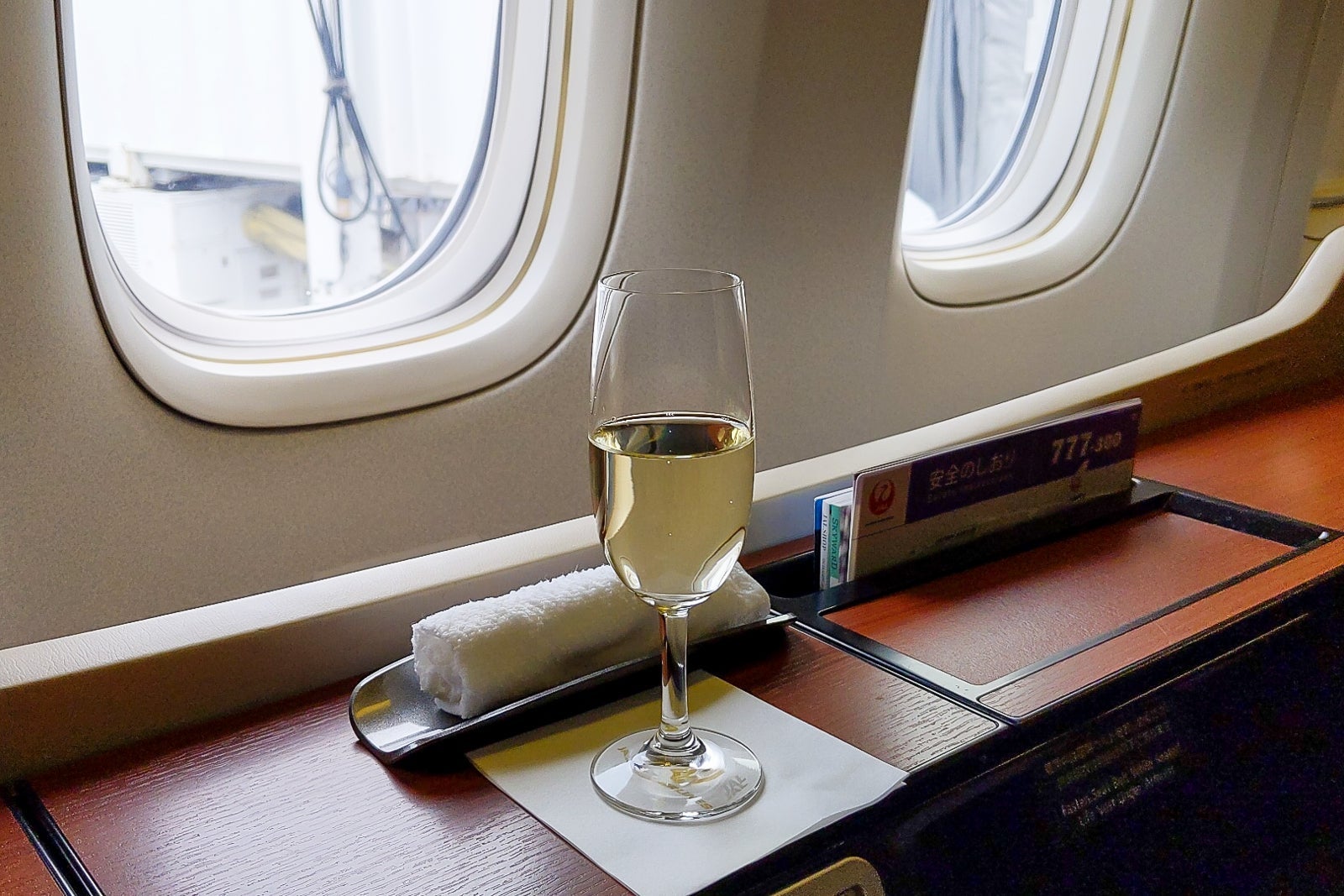 Japan Airlines offered three types of Champagne on this flight: Champagne Salon 2007, Louis Roederer Cristal 2009 and Comtes de Champagne Grands Crus Blanc de Blancs 2007.
