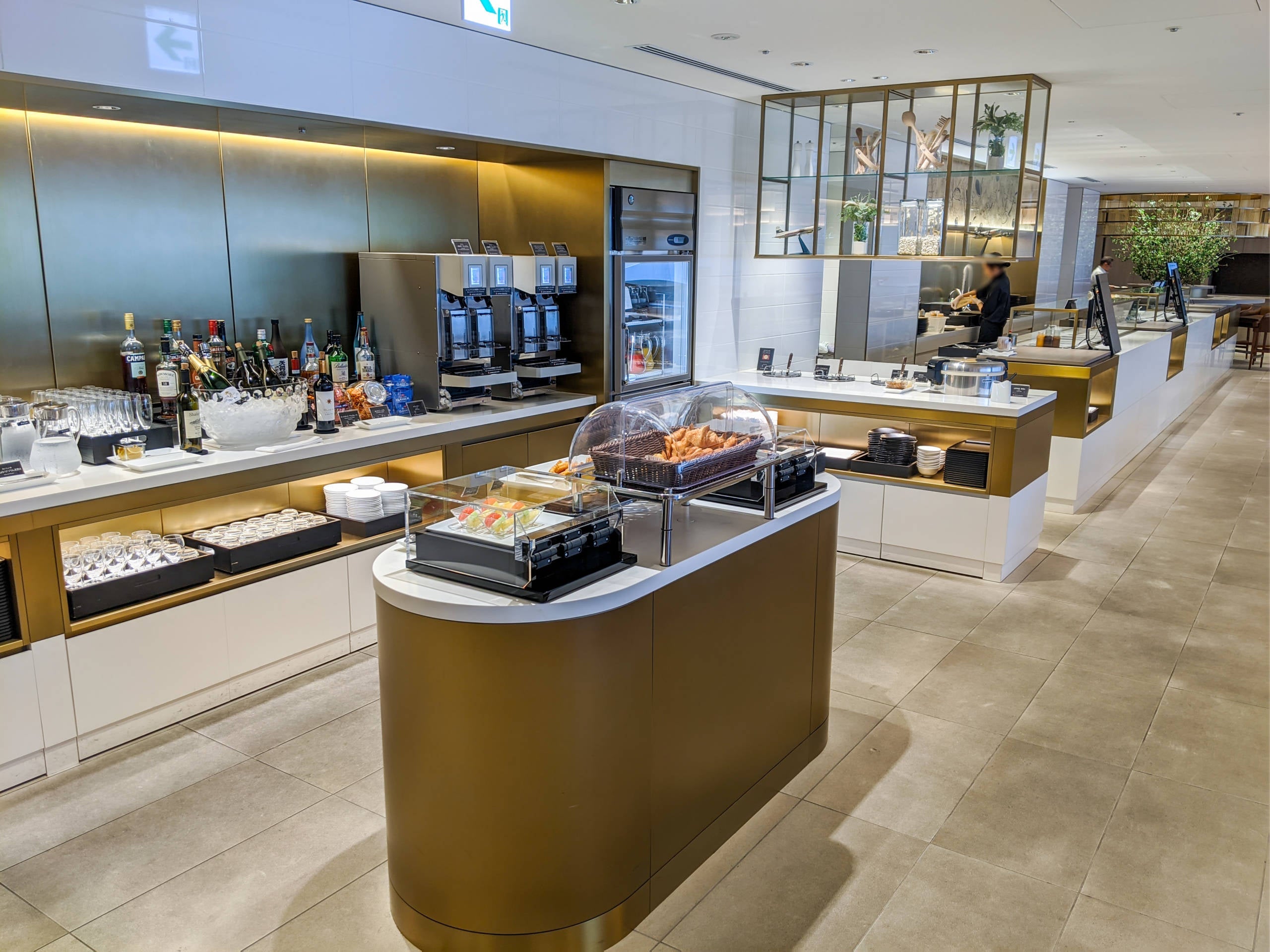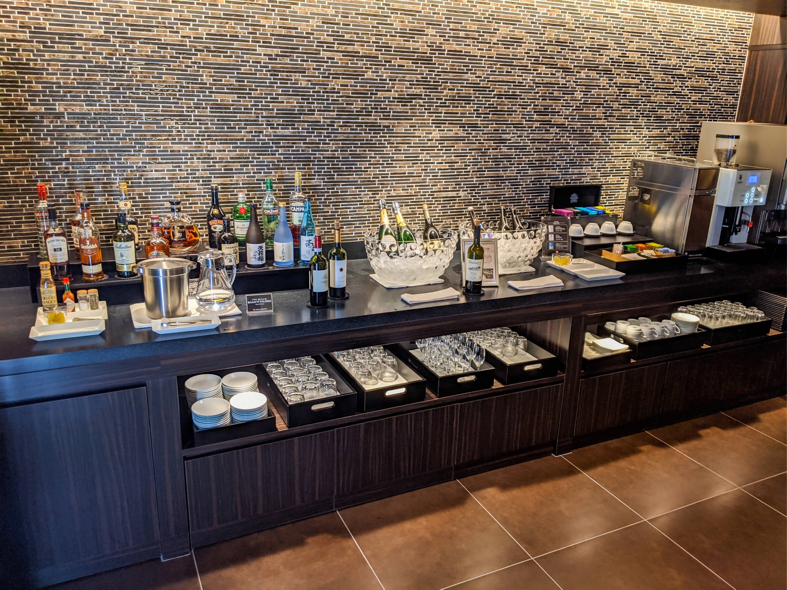 Walking onward in the lounge you'll see a snack and beverage area, as well as a staffed bar area. More on these later.