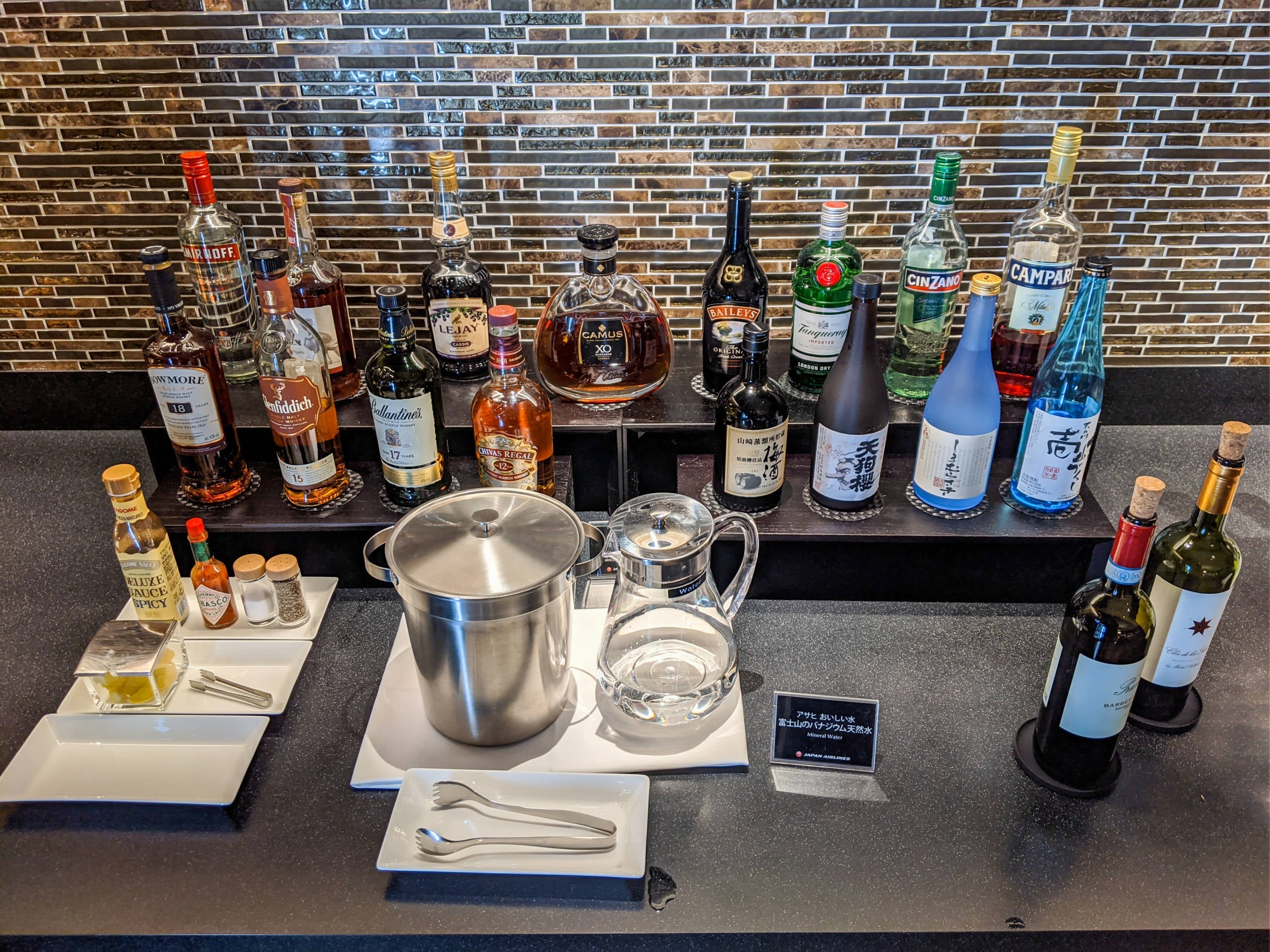 There are three self-service beverage areas in the lounge -- two on the fourth floor and one on the third floor. Each area has sake, wine, liquor and beer pouring machines available on the counter. And, there are sodas, fruit juices and cold beer glasses available in a refrigerator near each beverage area.