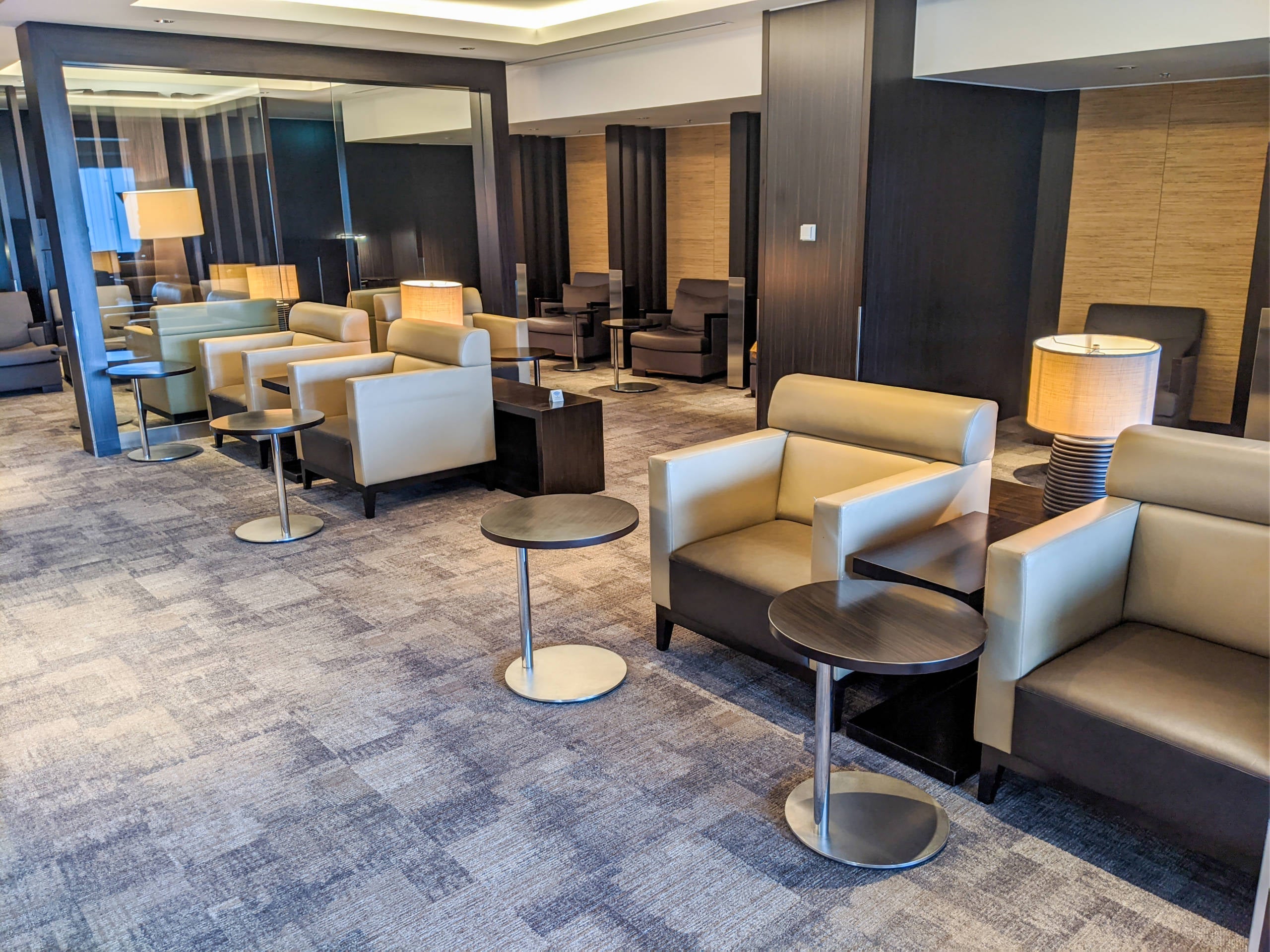 After the shoe polishing desk, you'll find yourself at the far end of the lounge. There's an enclosed smoking room here, so if you sit in this area you might occasionally catch a whiff of smoke.