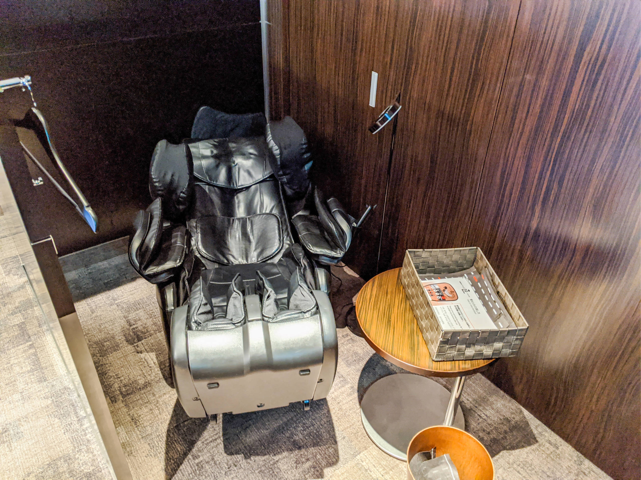 - Massage chairs without a wait (there are two in the First Class Lounge and at least eight in the Business Class Lounge)