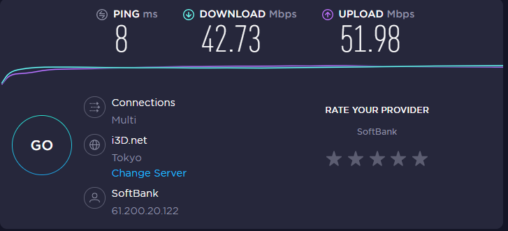The lounge's Wi-Fi is easy to access and reasonably fast. A speed test mid-day showed 43 Mbps download and 52 Mbps upload.