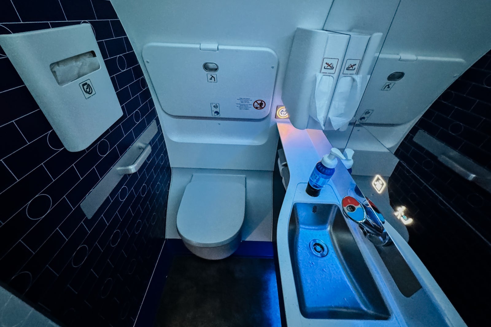 Even More Space passengers share the same two restrooms as standard economy passengers; both are at the back of the plane. The bathrooms are basic and tiny, though they feature touchless activation to flush the toilet and operate the sink.