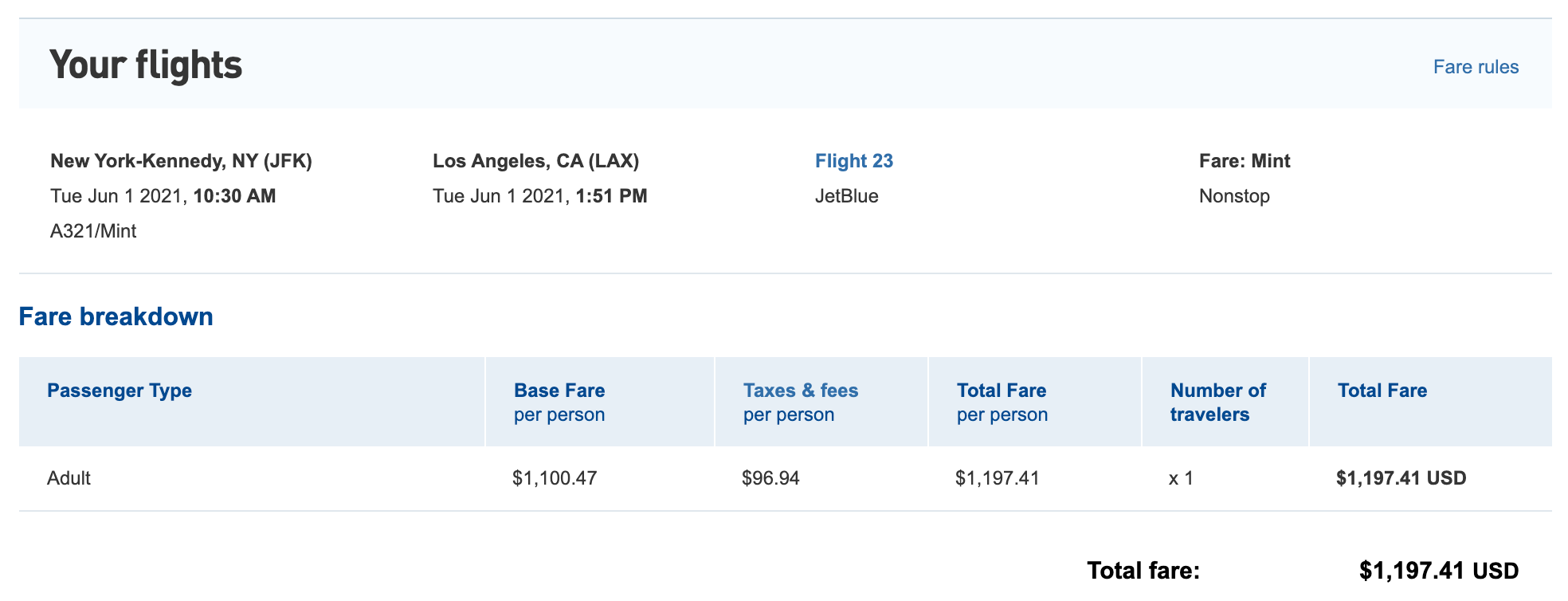 This, here, is the crux of this entire experiment. JetBlue Mint is often very expensive; Spirit Big Front Seat is not. In no other way is Spirit's product better than JetBlue's — it's all about the fare.