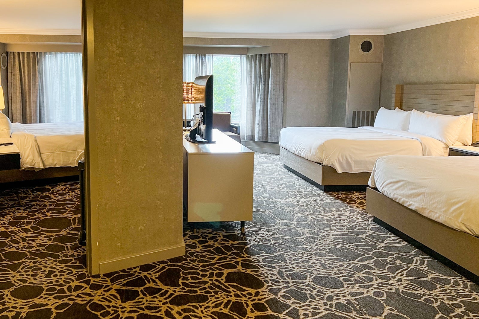 For a two-bedroom Family Room, which comes with one king- and two queen-size beds, like the one we reserved, expect to pay between 511 Canadian dollars (about $394) and CA$843 (roughly $650) per night (taxes included) this summer.