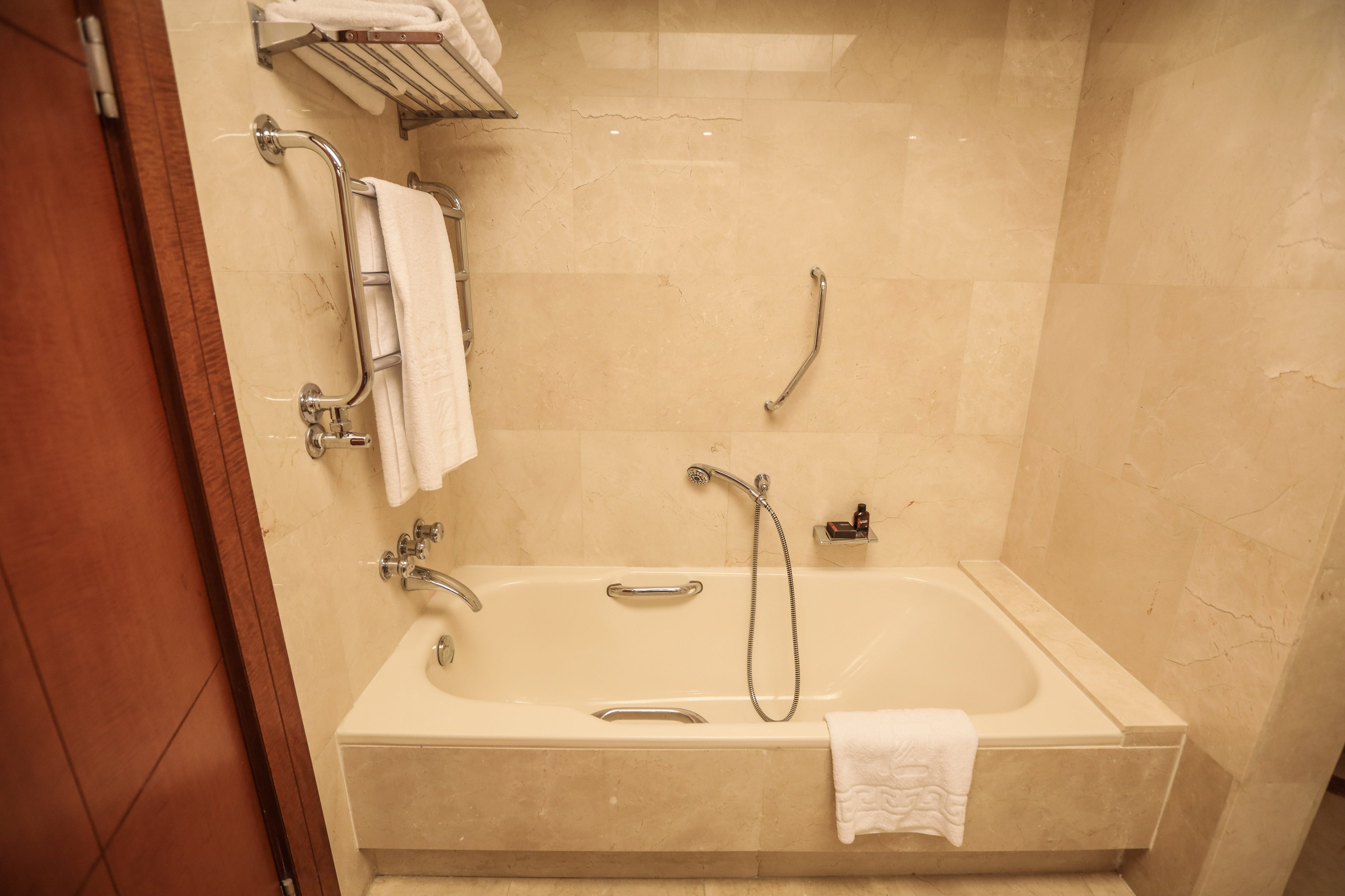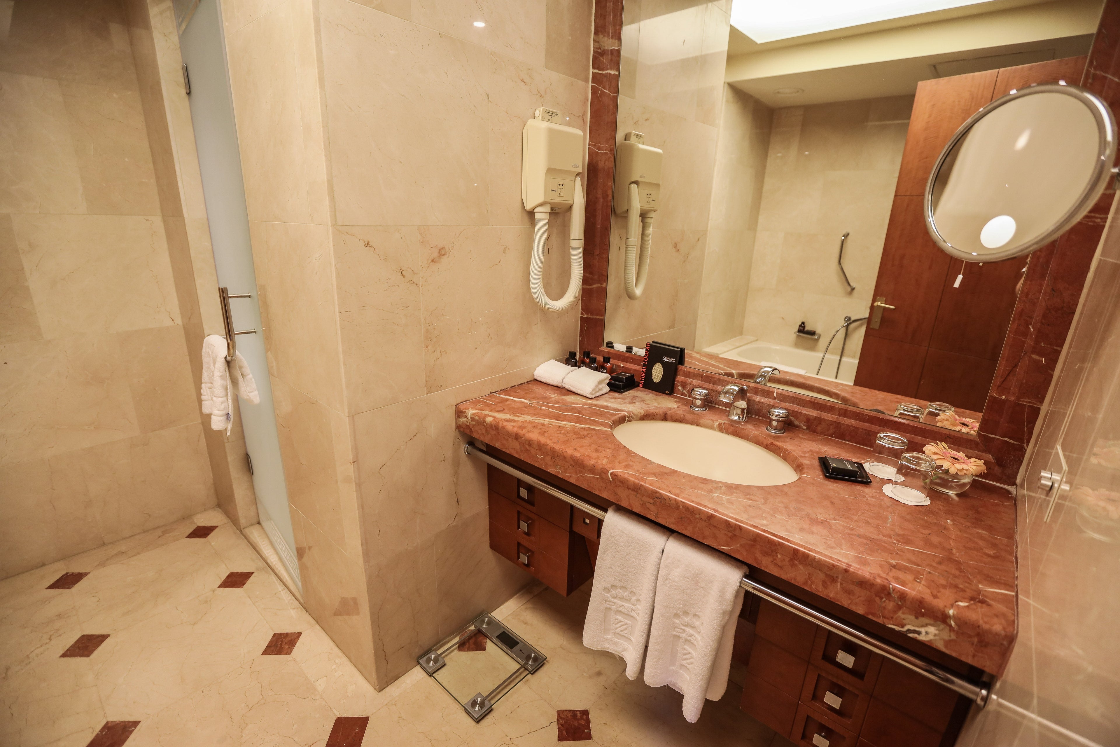 The room definitely felt a bit '80s, though, especially the bathroom, which was definitely dated for such a nice hotel. The hair dryer was one of those boxes with a tube on the wall.
