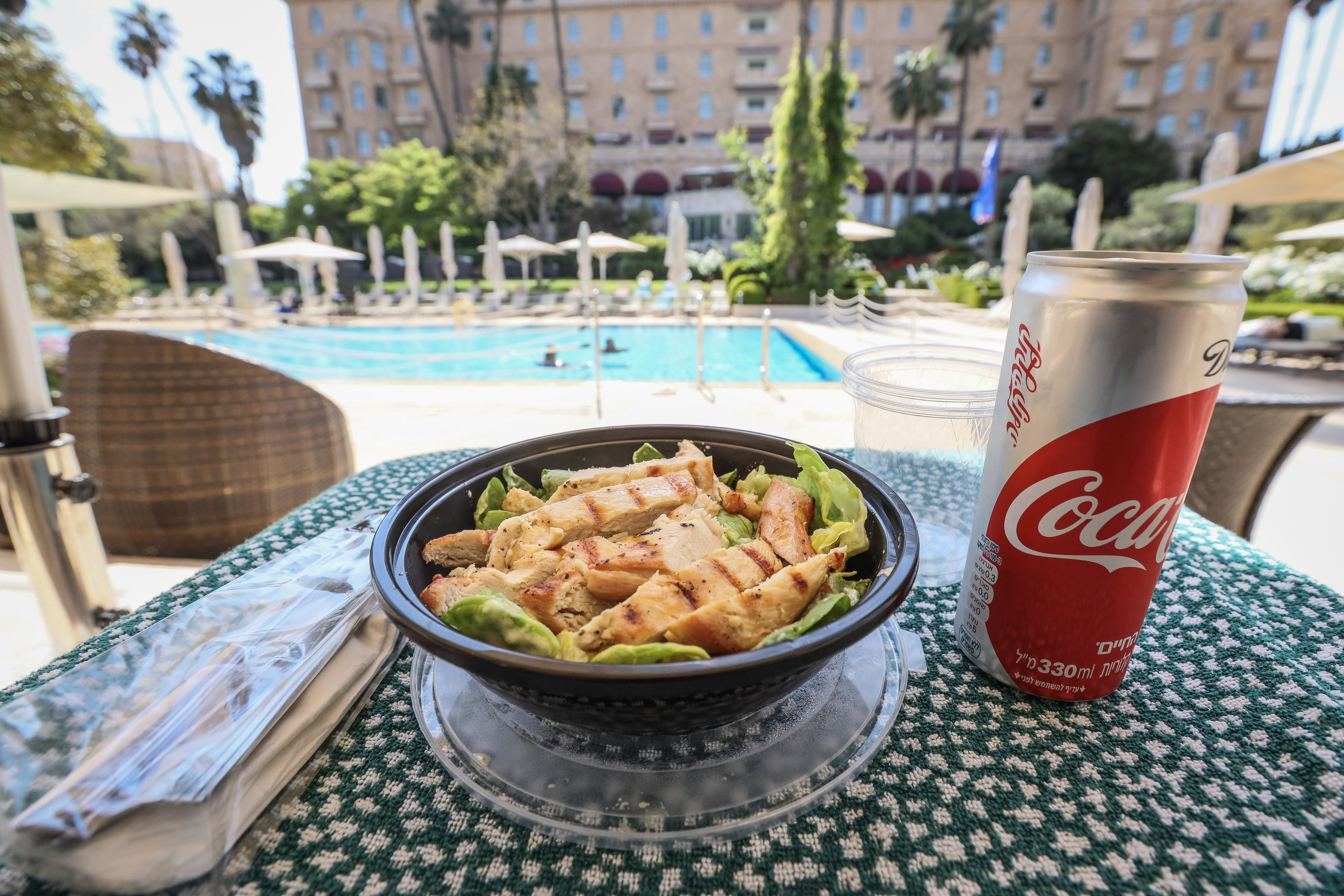 Although there was a bar near the pool, it didn't do poolside service, but they did pack me up a chicken salad to take to my day bed.