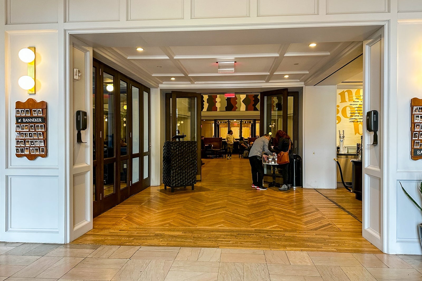The Line DC is located in Adams Morgan, nestled between a series of brightly colored and inviting shops, bakeries and bars. Constructed in 1912, the building was originally home to the First Church of Christ Scientist, an identity that peeks through in details like old pews and hymnal boards incorporated into the hotel's decor. But far from feeling hushed or haunted, the repurposed space is large, lively and inviting. It's a great spot to settle in with a book and a cup of coffee if your room isn't ready when you arrive.