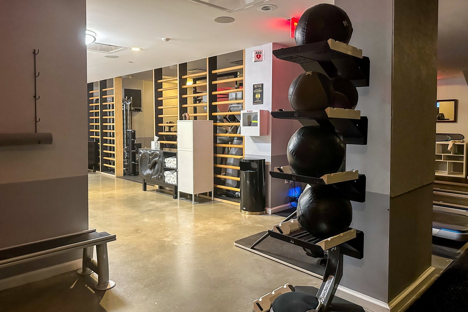 The Line DC's basement holds one of the best-equipped hotel gyms I've seen. Morning Peloton devotees and CrossFit junkies alike can knock out a great workout, while the classic cardio machines and weights along with bars, padded medicine balls and training sleds mean there's something for every fitness level and interest.
