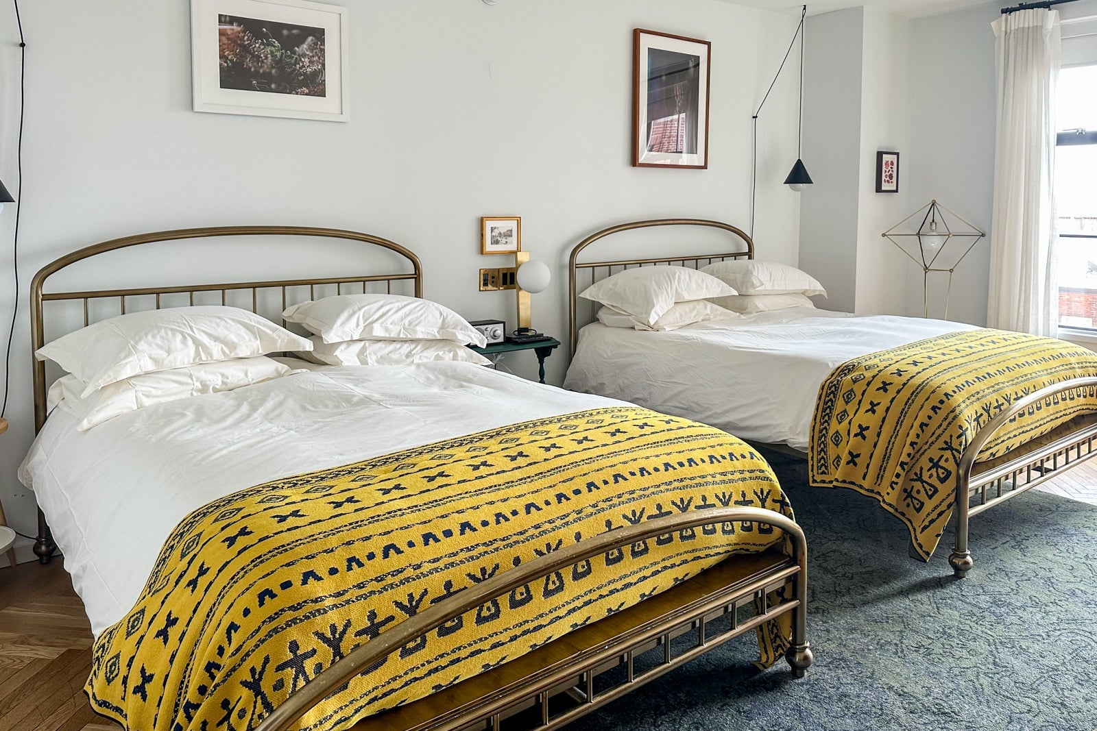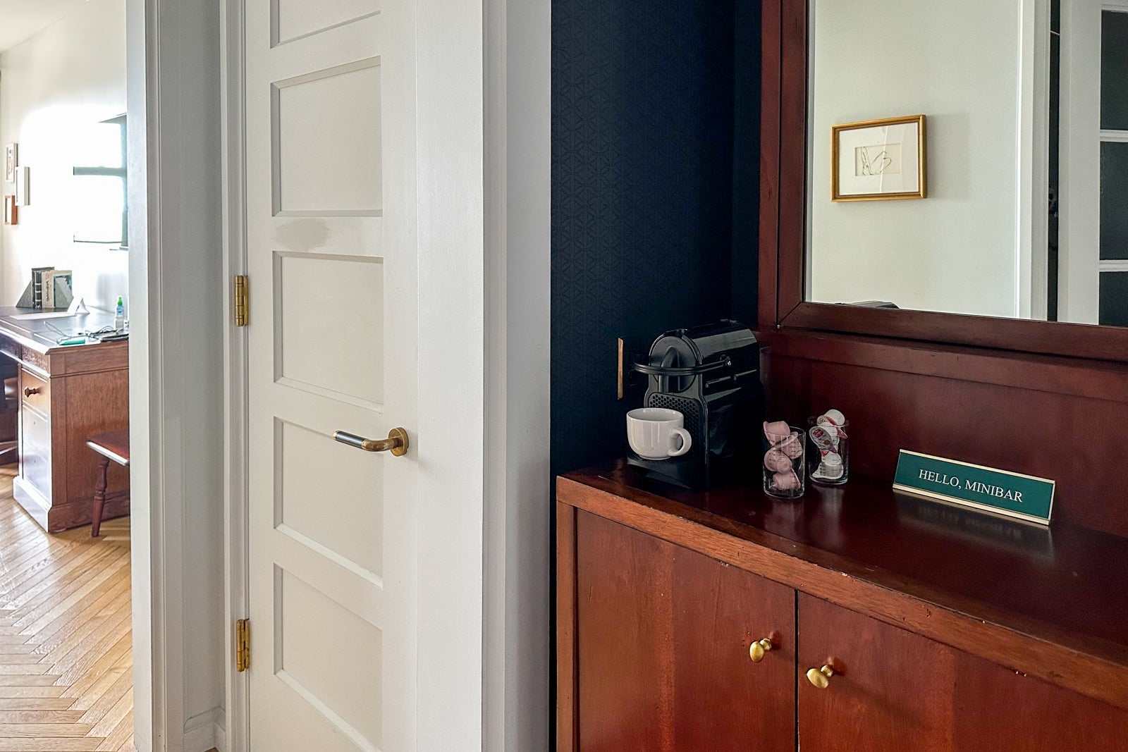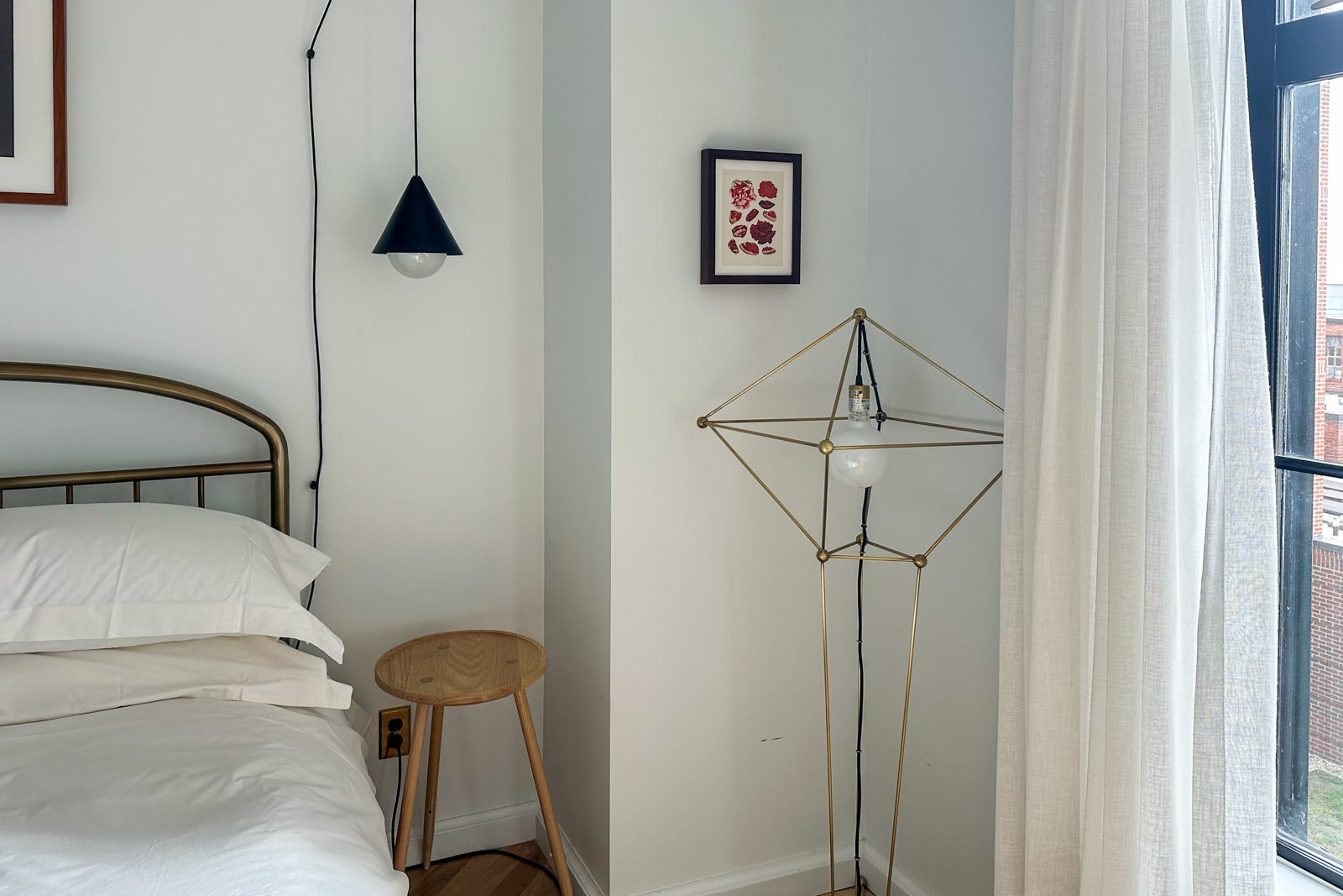 What really distinguishes the rooms, including my District Double Queen, though, is the eclectic blend of old and new details throughout. The geometric light fixtures, brass bed and mismatched side tables all add up to a classic but modern style that creates a feeling of home. If you have a designer friend helping you decorate your home with antique flea-market finds, that is.