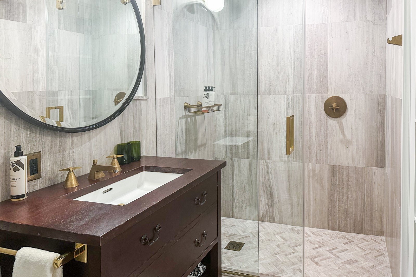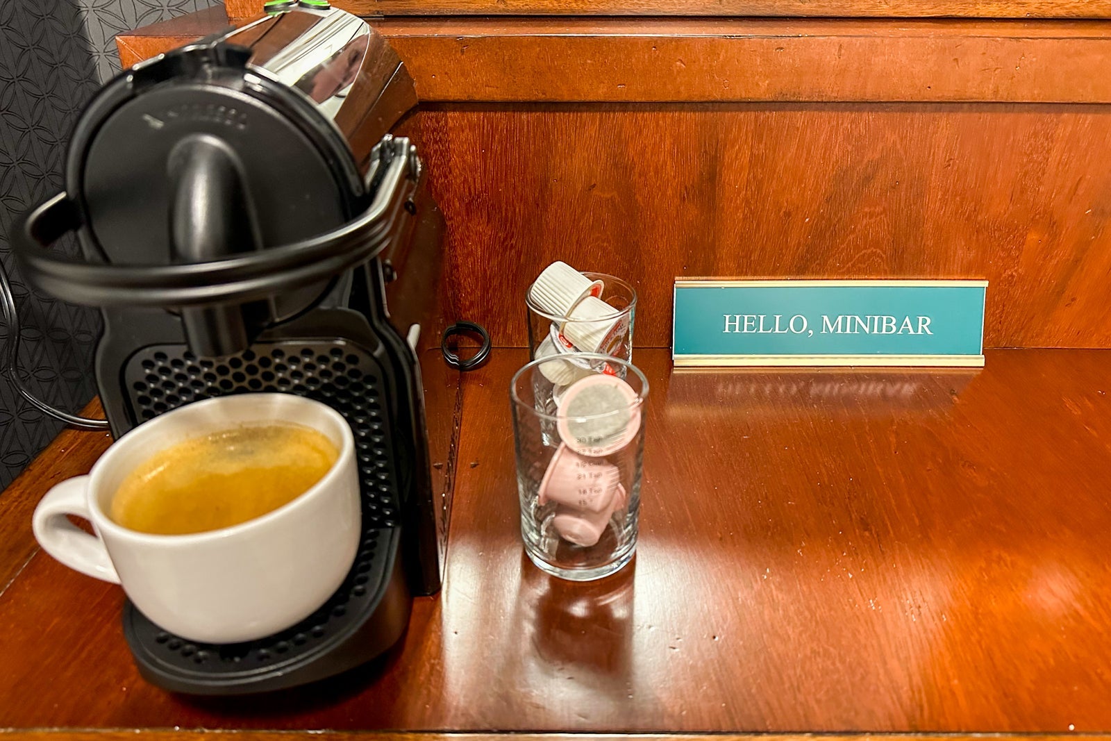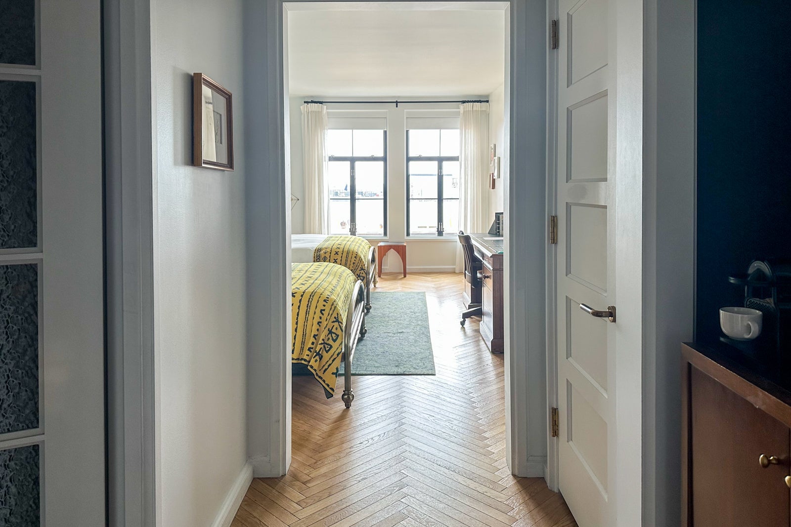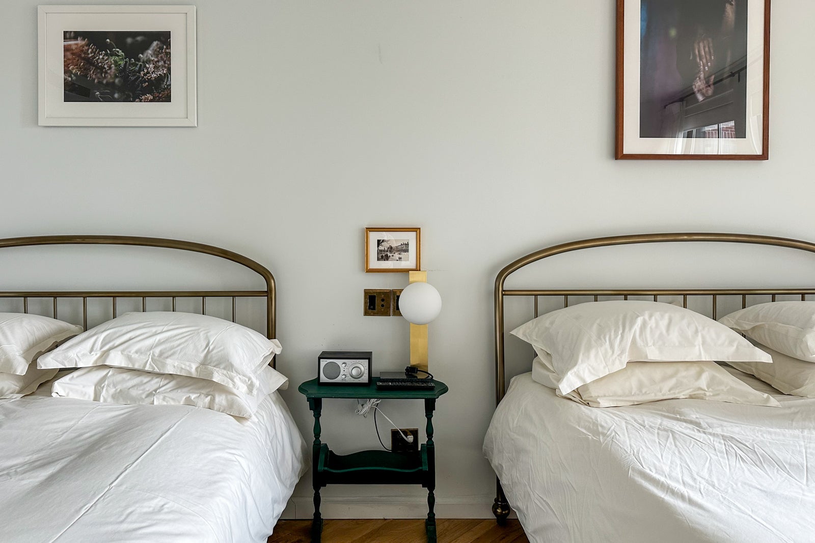 What really distinguishes the rooms, including my District Double Queen, though, is the eclectic blend of old and new details throughout. The geometric light fixtures, brass bed and mismatched side tables all add up to a classic but modern style that creates a feeling of home. If you have a designer friend helping you decorate your home with antique flea-market finds, that is.