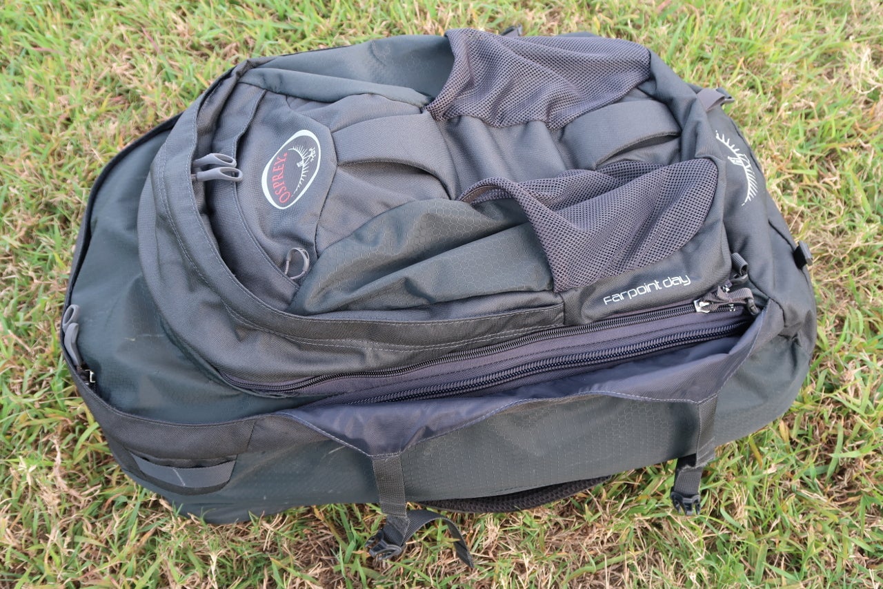 The Farpoint 70 has a lot going for it. It's lightweight yet durable and Osprey will repair it "no matter what." The hip belt effectively moves most weight from your shoulders to your hips. Plus, although it's technically too large to be a carry-on, I've never had issues bringing it on-board. However, the day pack is simply too small, doesn't have enough pockets and lacks a usable water bottle storage area.