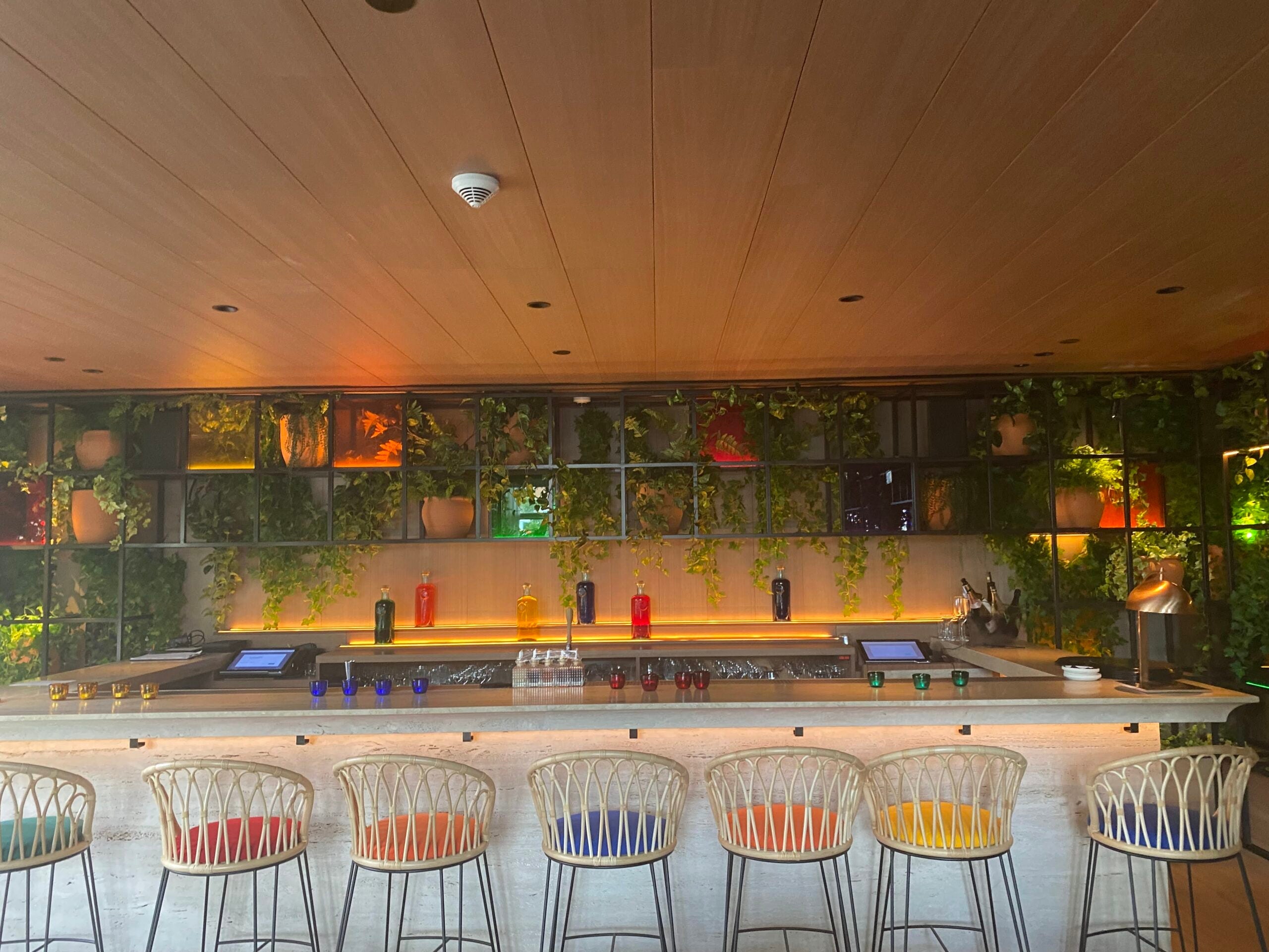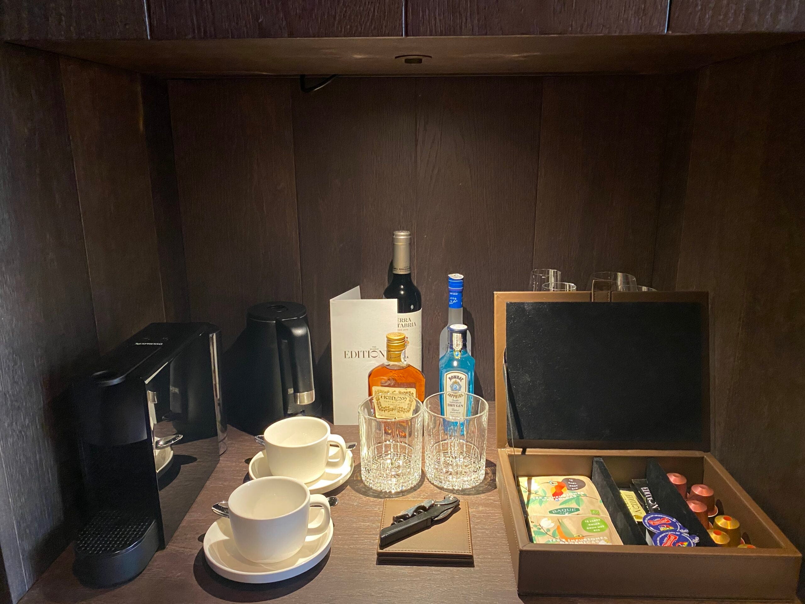 After a long pandemic of limited housekeeping, I noticed that my room was cleaned twice daily — once for usual housekeeping and then tidied up again during turndown service. Small, sustainable cartons of water were replenished daily. The bathroom had a GHD hair dryer and the room had a Nespresso machine with capsules as well as a minibar with all the usual suspects like juices, wine, soda, spirits and snacks.