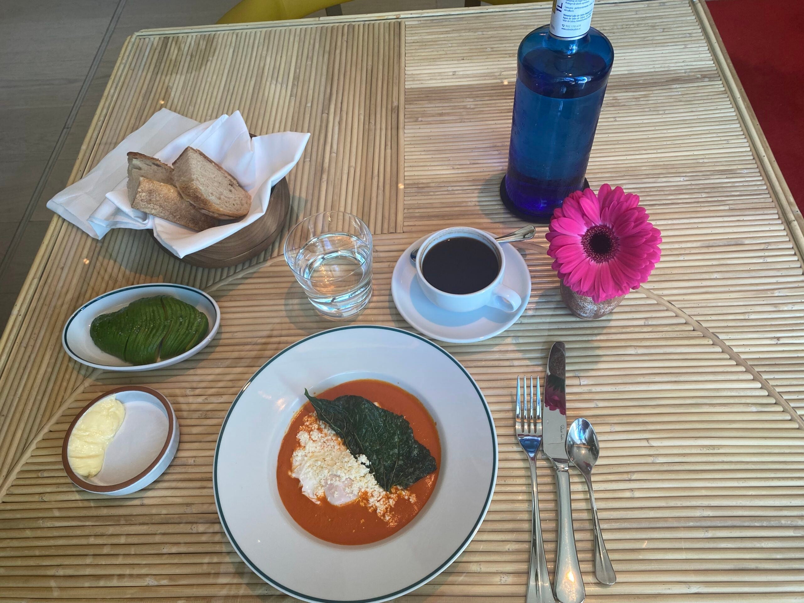 Breakfast is served in Jeronimo a la carte (not buffet) from 7 to 11 a.m. daily. The menu has all the regular favorites like eggs any style, avocado toast and a selection of fruit, as well as Olvera's take on huevos rancheros, poached eggs with black beans on a tortilla hidden beneath in a creamy, thick ranchero sauce and topped with flaky cheese and hoja santa, a Mexican herb.