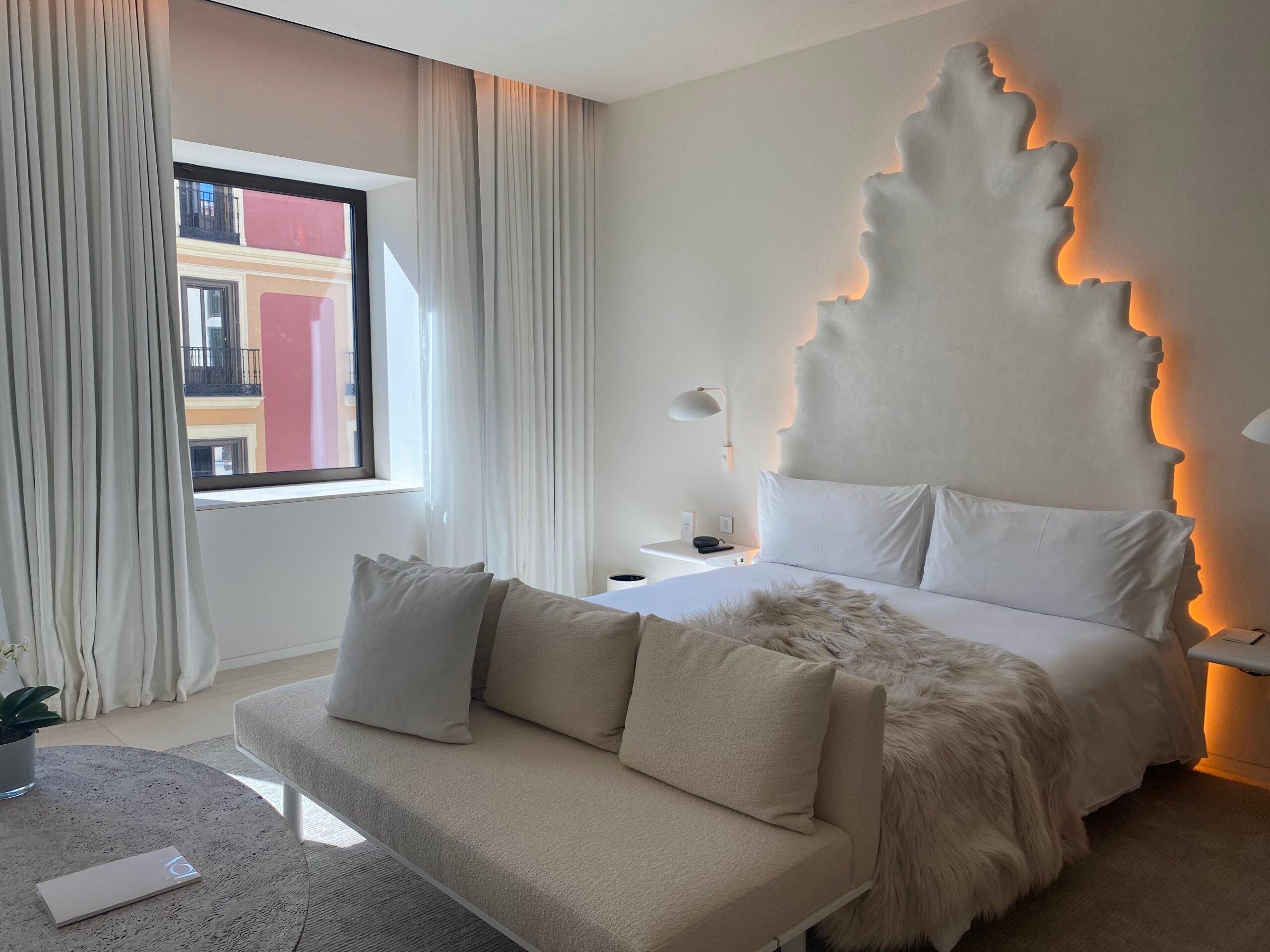 Expect to see nuanced pieces of art contrasted by the hotel's crisp, minimalist design aesthetic, such as an 18th-century baroque door designed by Don Pedro de Ribera placed among the clean grid lines of the building's exterior.