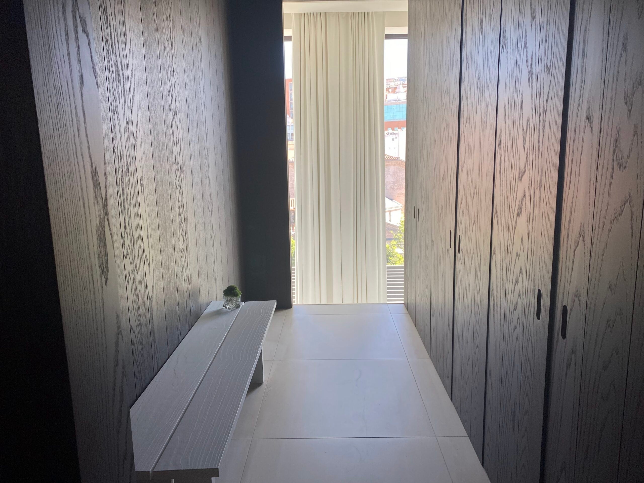 The hotel's wow factor starts upon entering. A first glimpse at the property's white floating staircase, backed by warm wooden walls, is positively jaw-dropping, setting the space apart from any other hotel in Madrid.