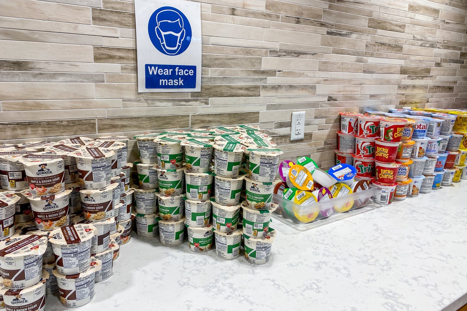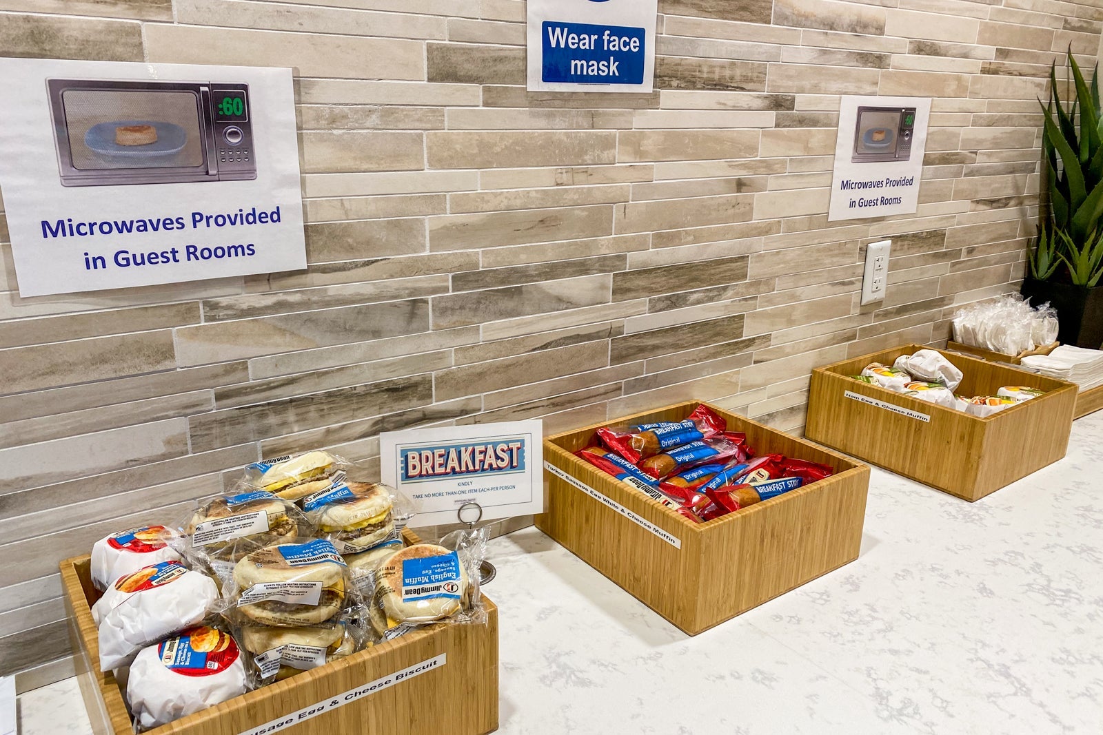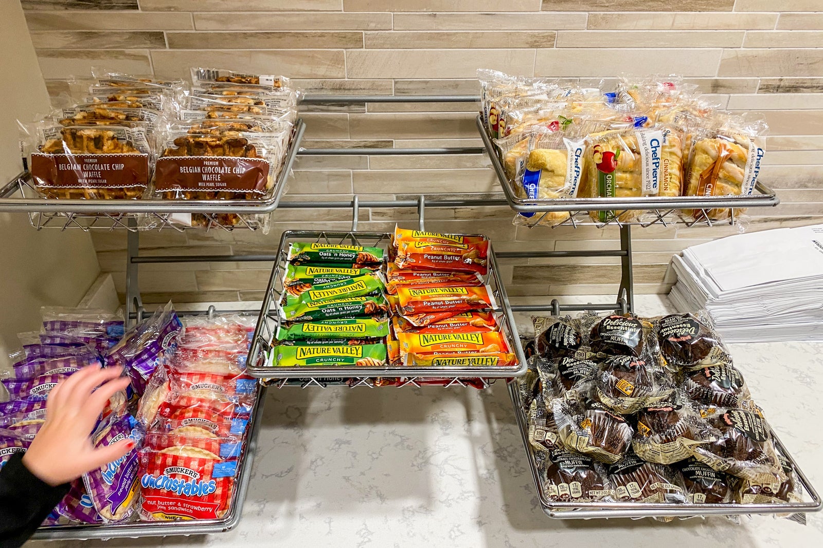 Everything is grab-and-go and pre-packaged, but there were options we loved such as microwavable biscuits, single-serve brand-name cereal or oatmeal, granola bars, along with Uncrustables you could throw in your backpack for a "free" lunch later on in the day.