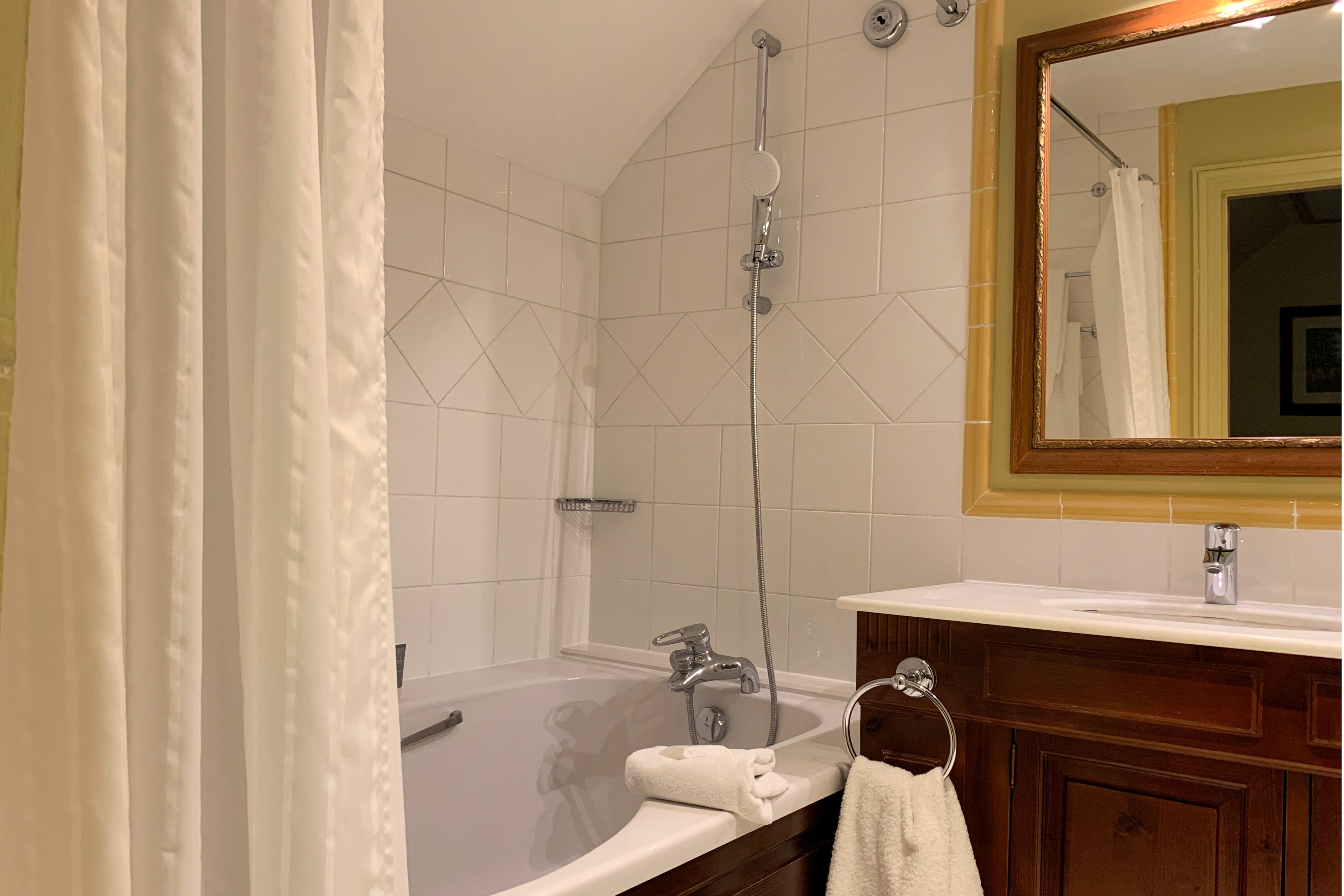 The guest bedroom had two twin beds and a bathroom with a stand-up shower.