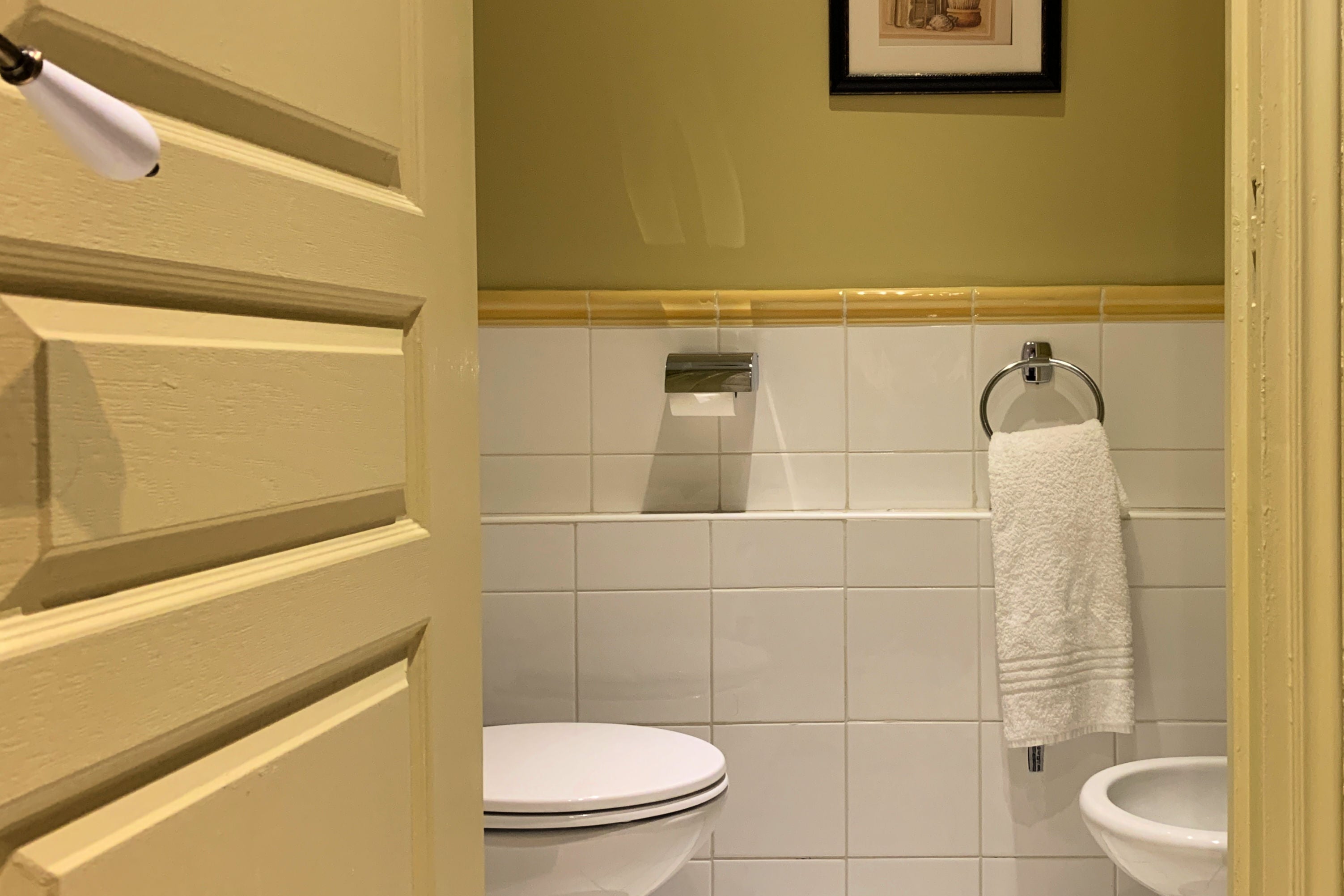 Upstairs, we found a master bedroom with an attached bathroom that included a deep soaking tub and shower, double vanity and a toilet and bidet separated by a door. (That door was a huge plus, in my book.)
