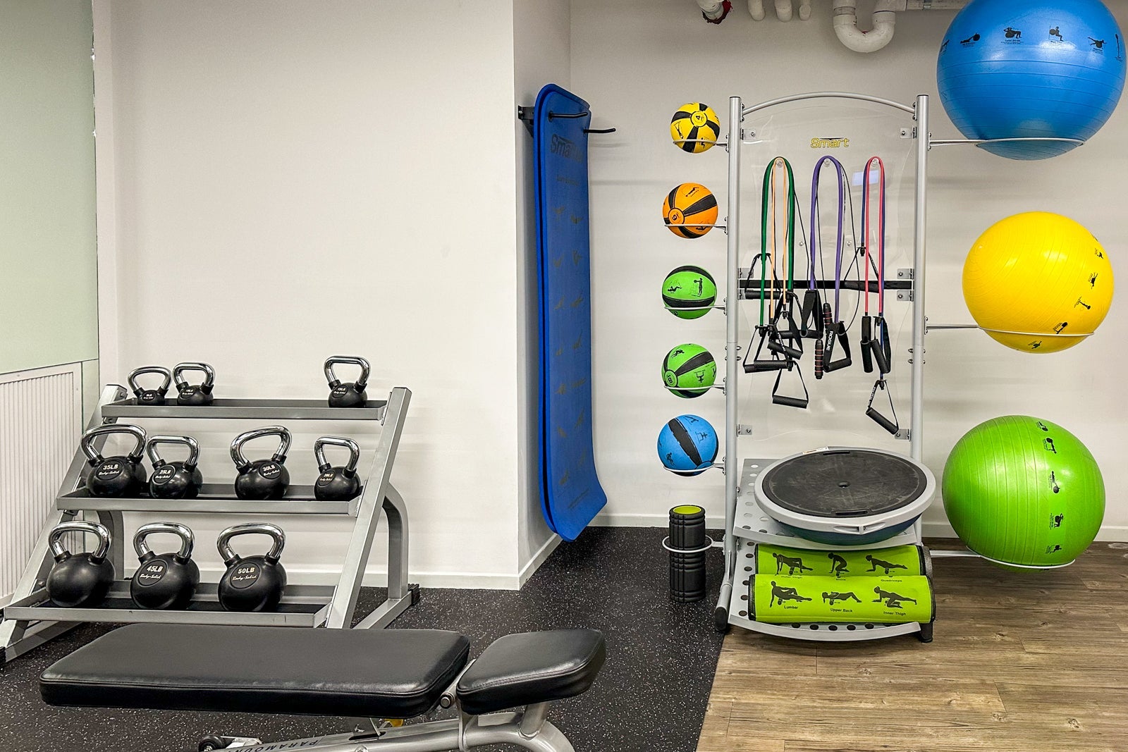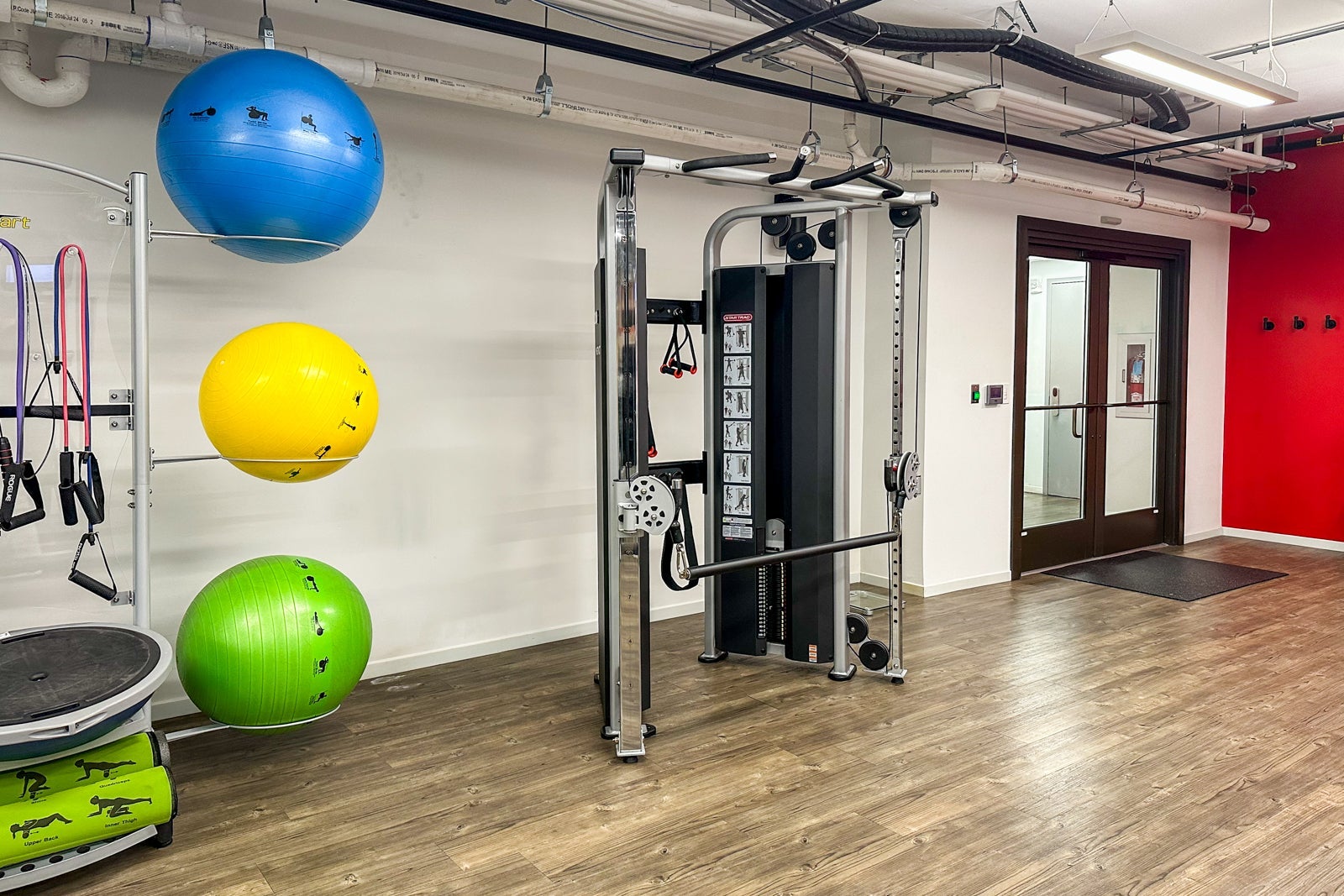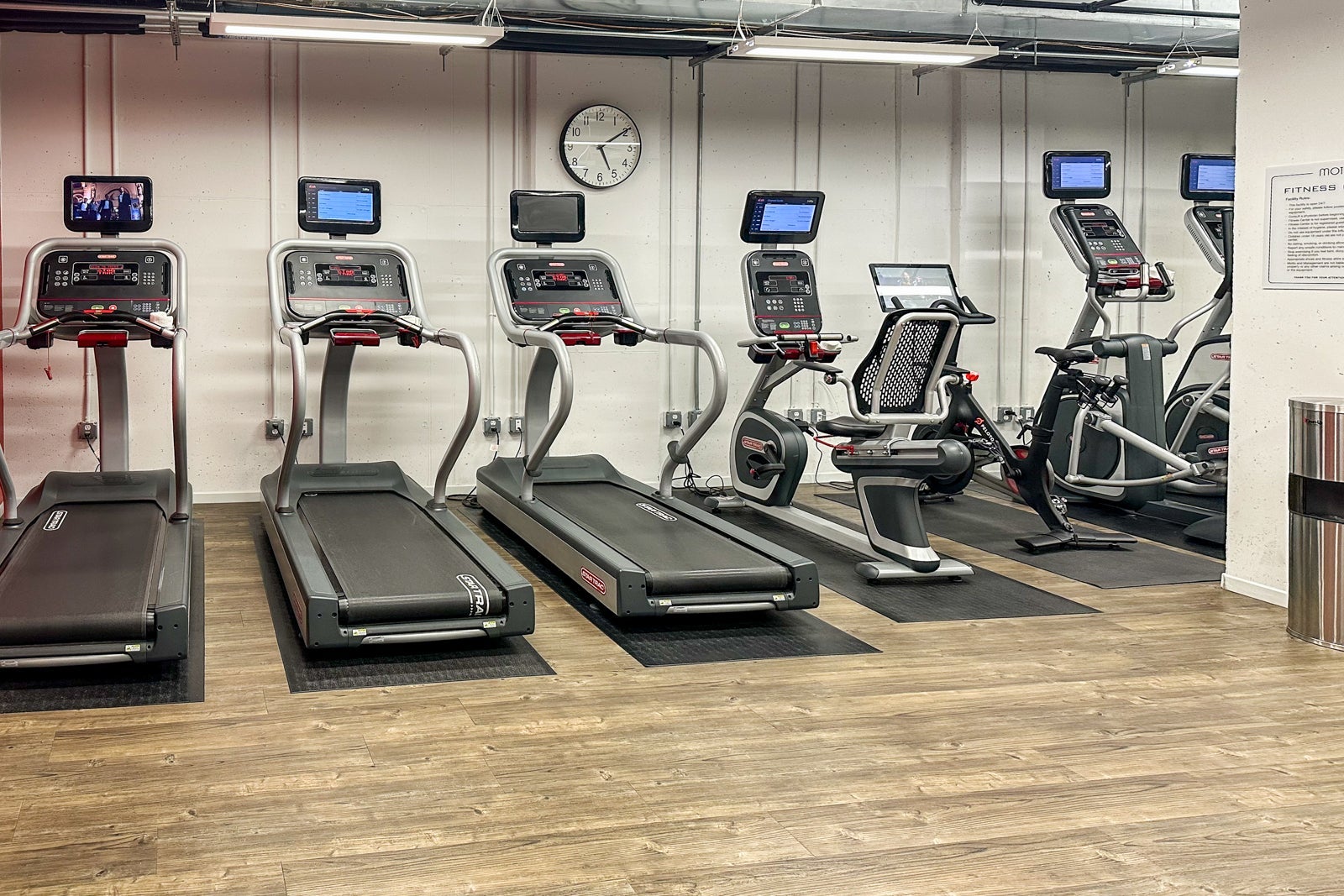 You'll be able to choose between the three treadmills, two ellipticals, or the Peloton bike for cardio; you can do a bit of strength training with the weight machine, free weights, kettlebells, medicine balls and resistance bands.