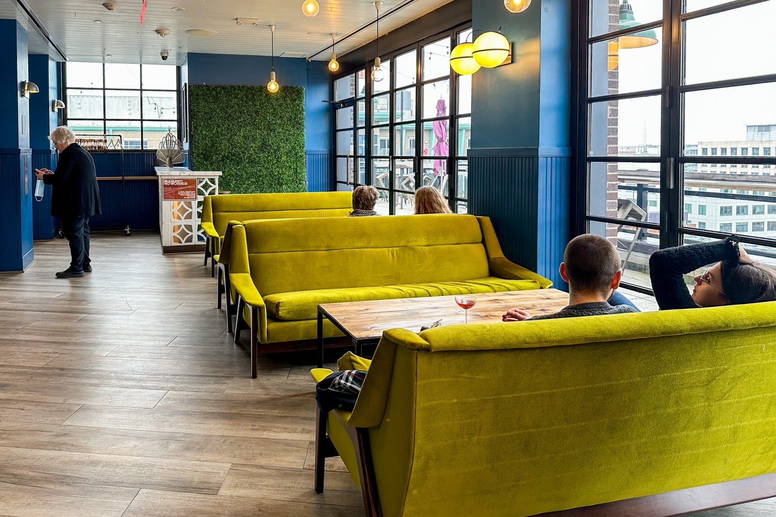 When you're ready for a drink, head to the roof for a cheese board ($18) or fries ($6) or cocktails like a Manhattan ($14). Alternatively, head down to the basement and check out the speakeasy-style Crimson Whiskey Bar and its award-winning bourbon list.