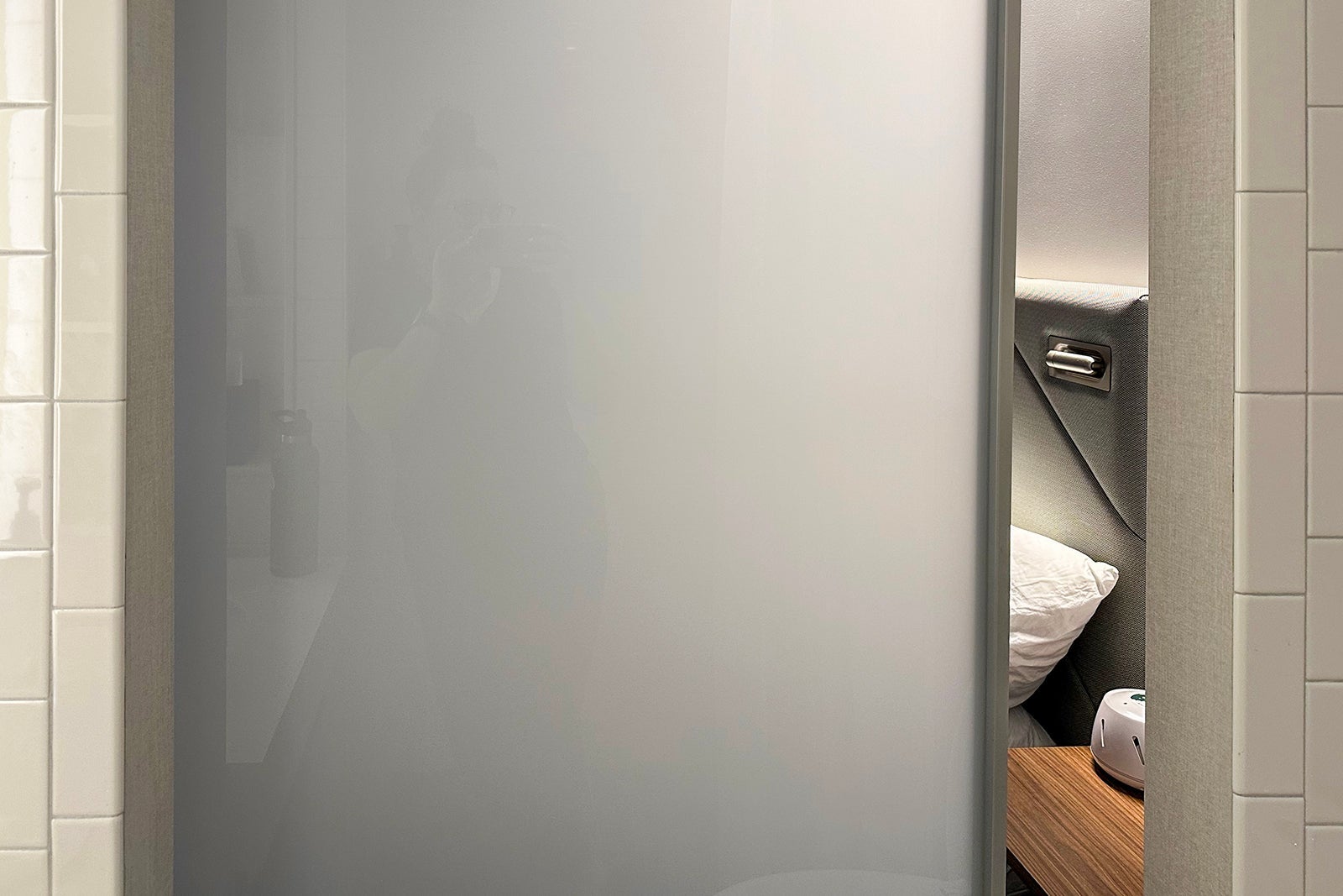 The sliding bathroom door was helpful, as there wouldn't have been space to open a hinged door. However, my bathroom door didn't stay closed on its own. This would be fine for anyone traveling alone but may have been an issue for someone sharing the tight space with a friend or partner.