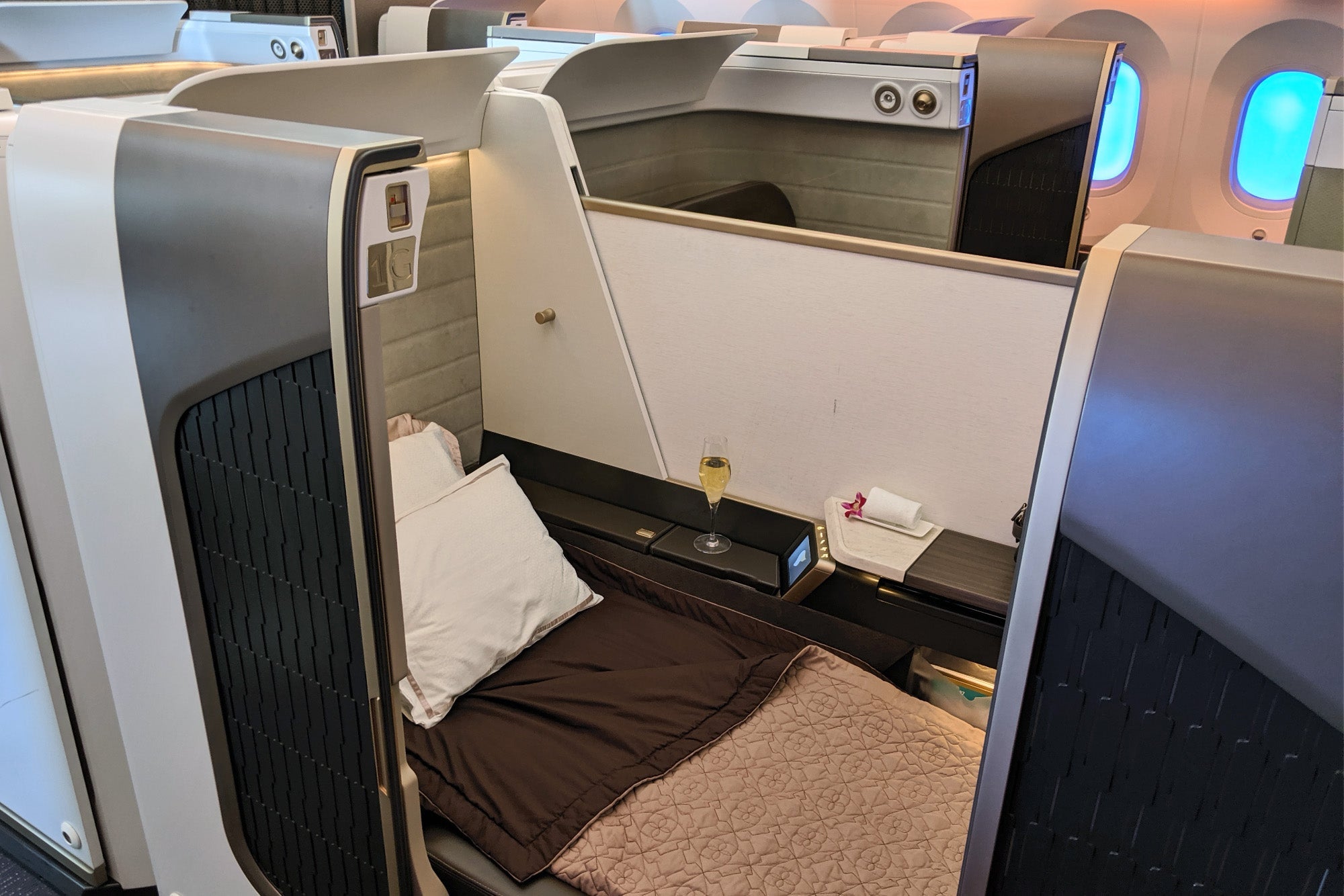Given that I was all alone, I asked the crew to make up another suite into a bed, so I wouldn't need to leave mine during that process.