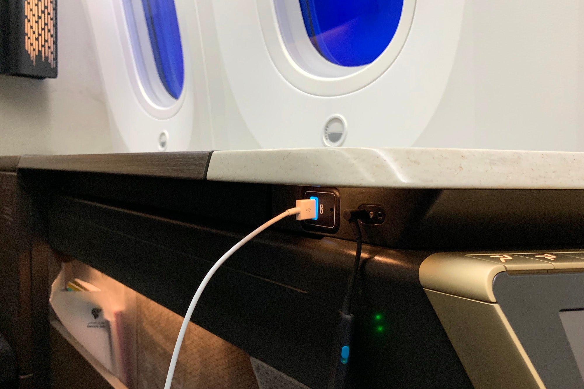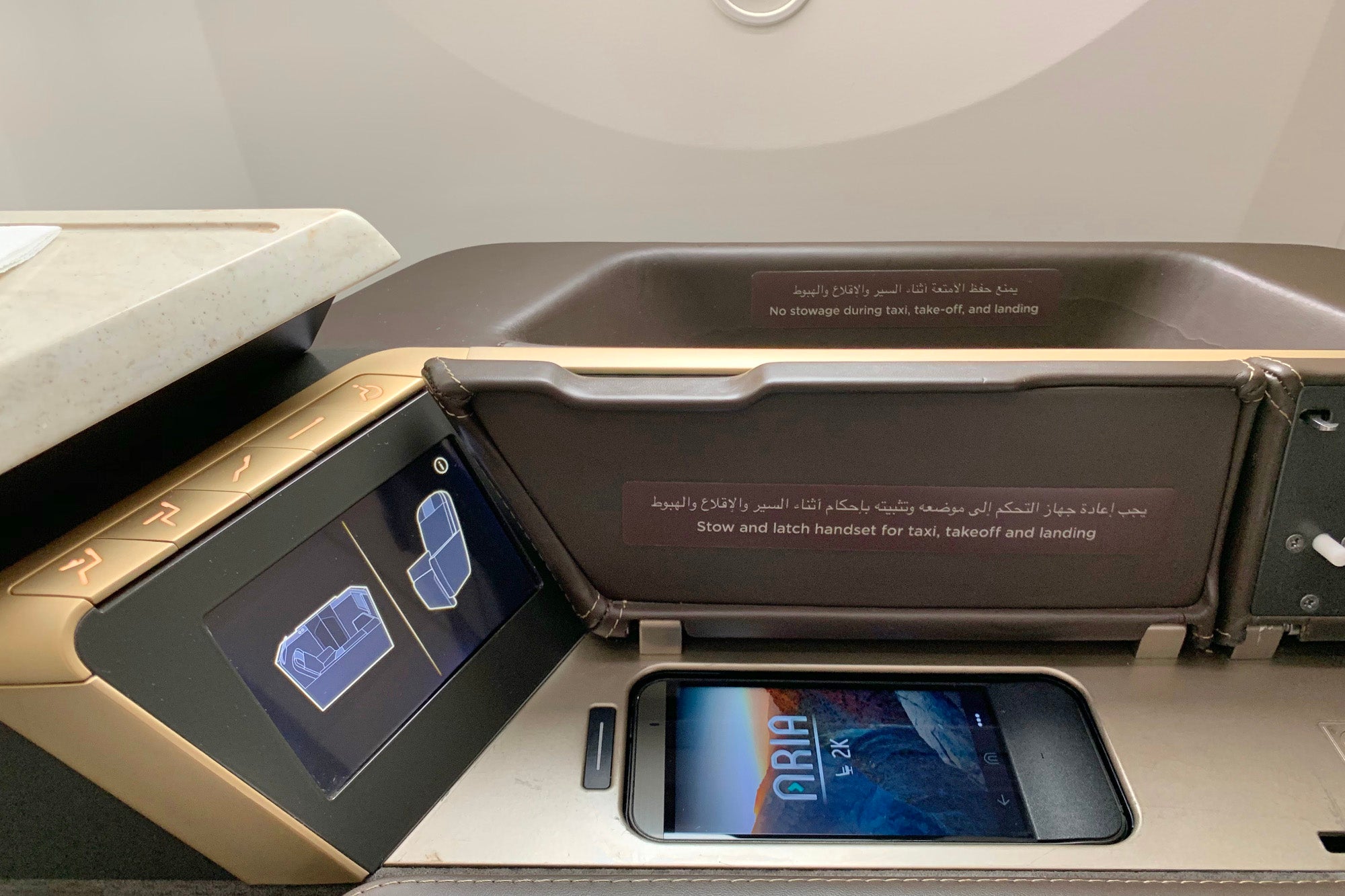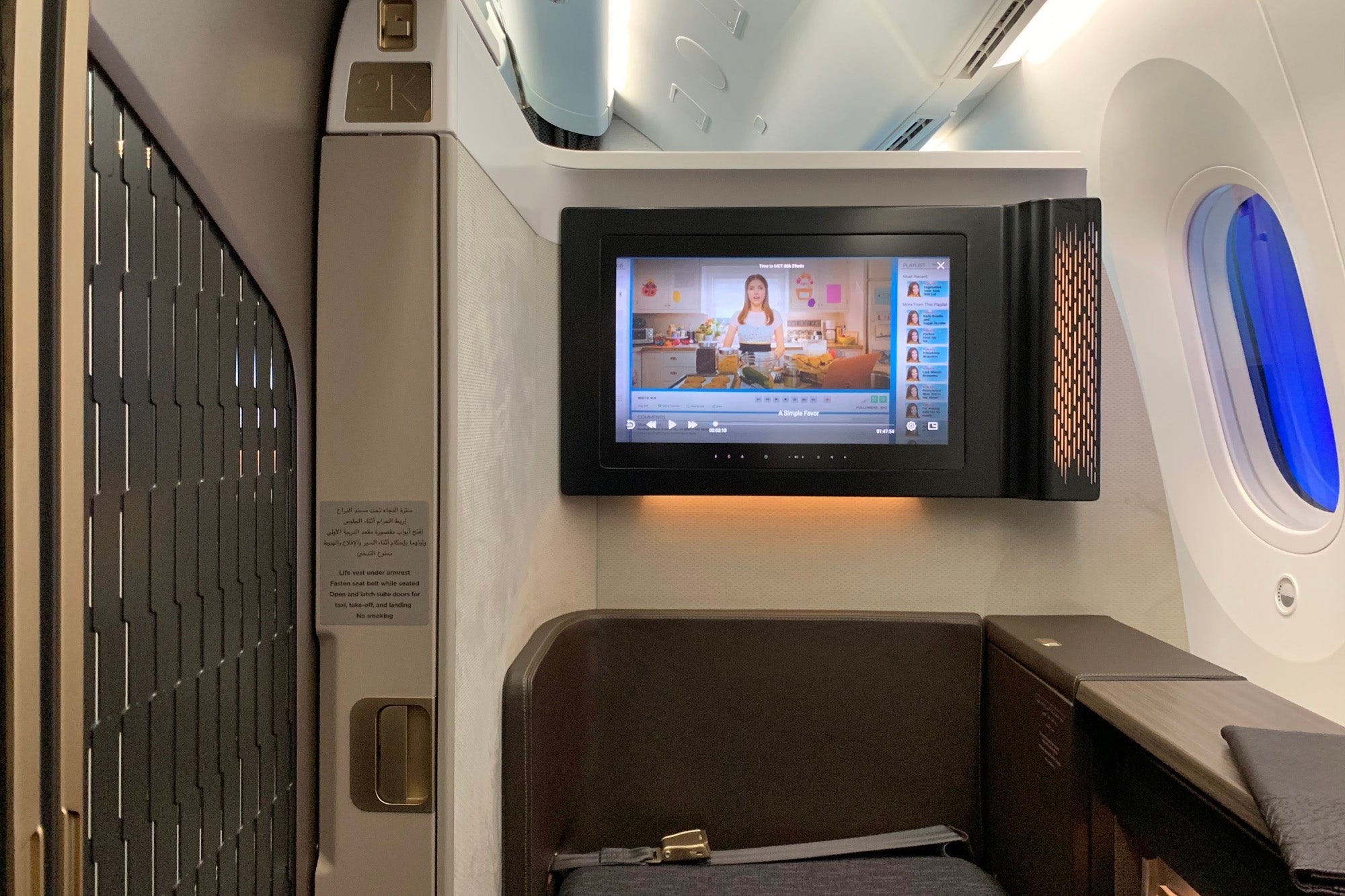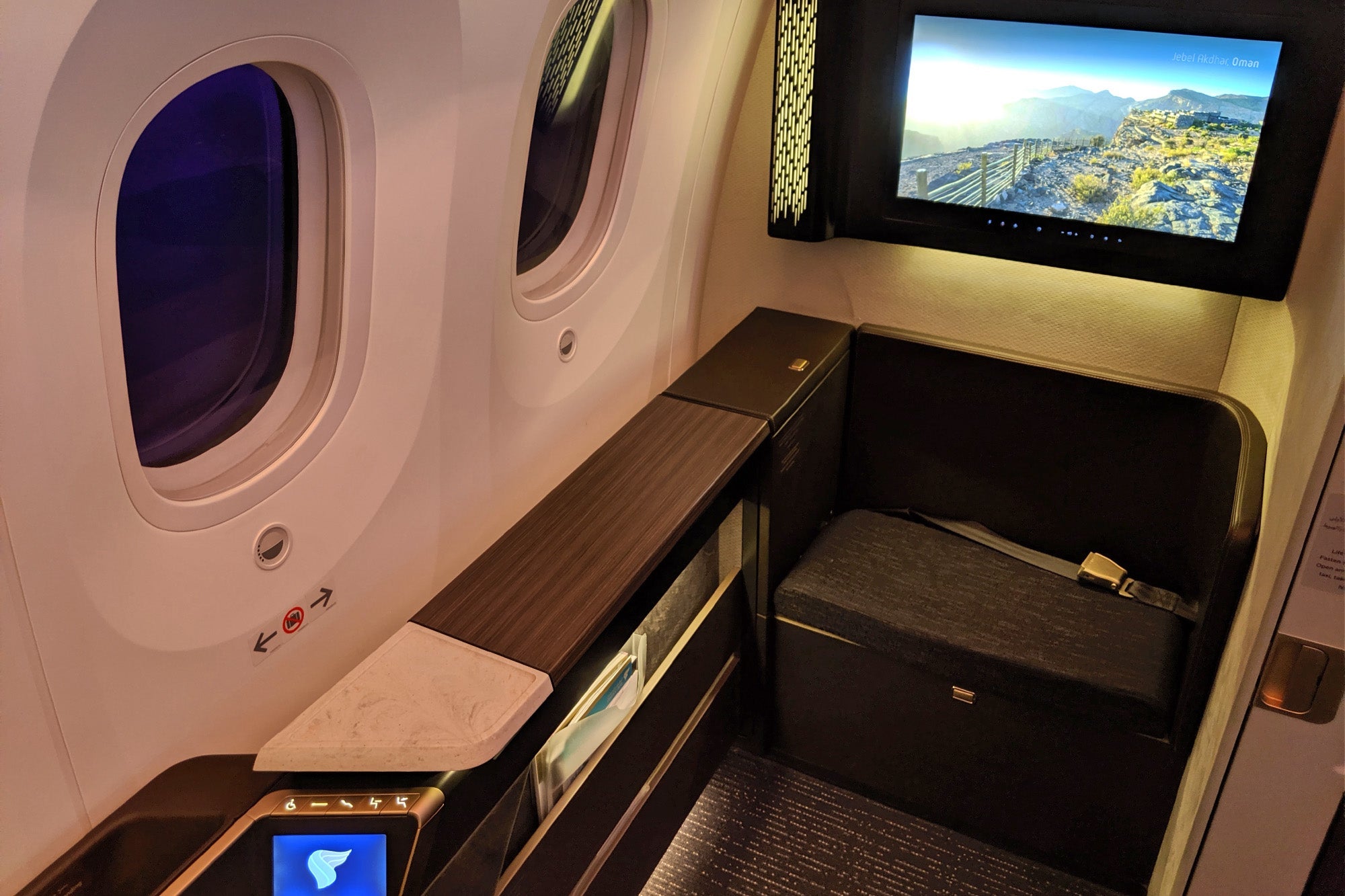 It was clear that Oman Air put a lot of thought into the suite design. The fixtures on my flight were intricately detailed, and the various features were easy to access — the headphone jack and USB charging port were exactly where I would have wanted them to be, but also hidden a bit out of sight.