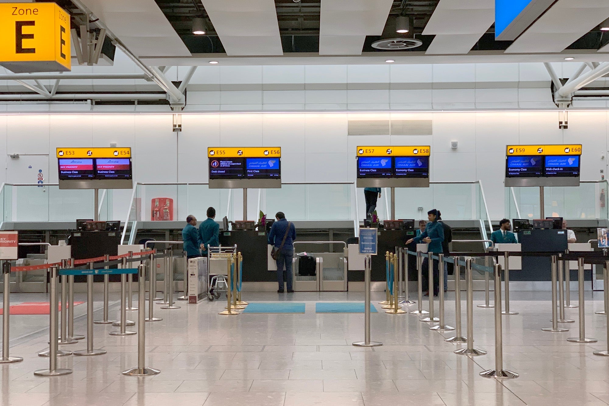 The Oman Air check-in area was nearly empty, with just one passenger checking in at the first-class queue, so I ended up walking over to an economy desk instead. I again asked about a partial refund following the downgrade on the second segment — the agent made a call, and after a few minutes on the phone, he very apologetically informed me that I'd have to follow up with customer service after the flight.