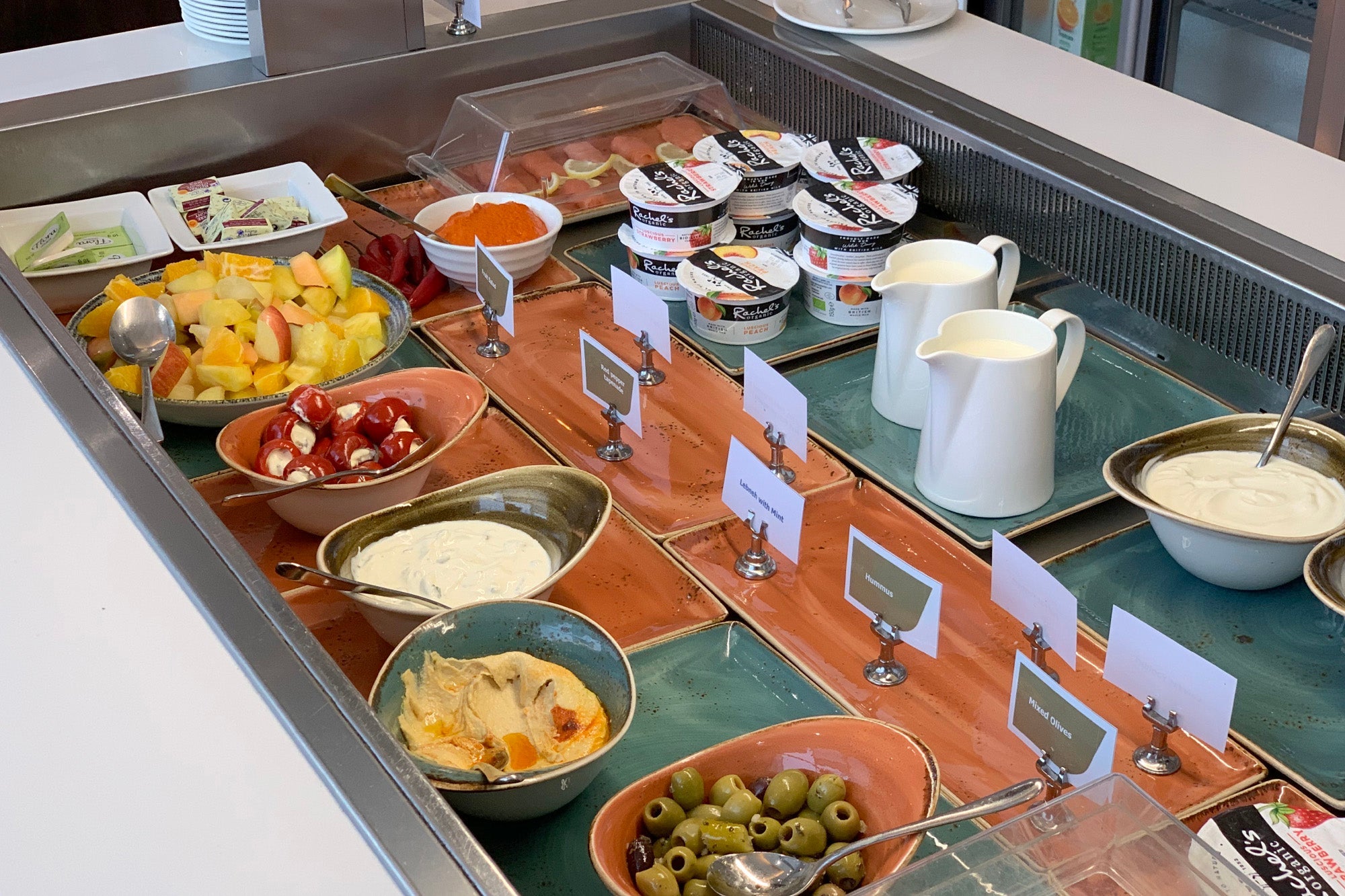 I could have easily eaten a full meal in the lounge — there were typical English breakfast items on offer ...