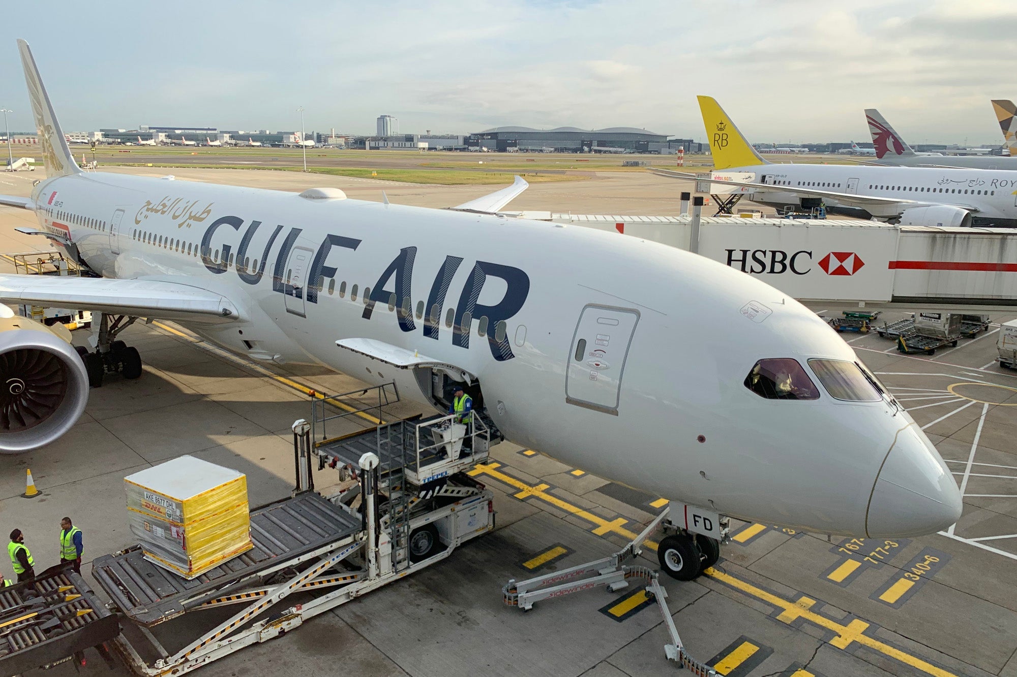 After breakfast, I snapped a few shots of the neighborhood — naturally, a Gulf Air Dreamliner was front and center.