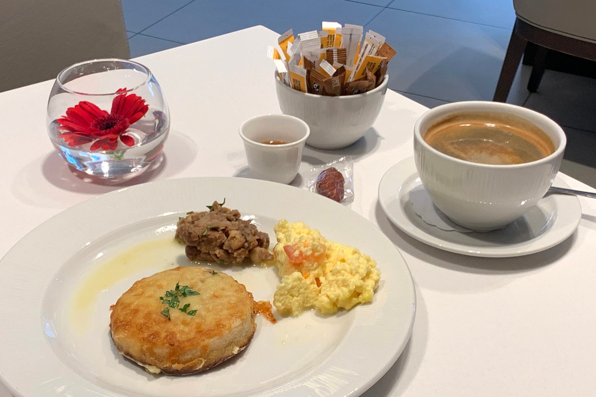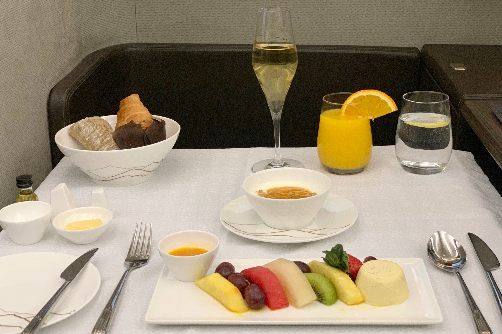As she set my table, the flight attendant offered a spectacular bowl of breakfast breads — I'm not exaggerating when I say these could have come from a patisserie on the ground. Easily the best bread I've had on a flight. Must have been a lot of butter.