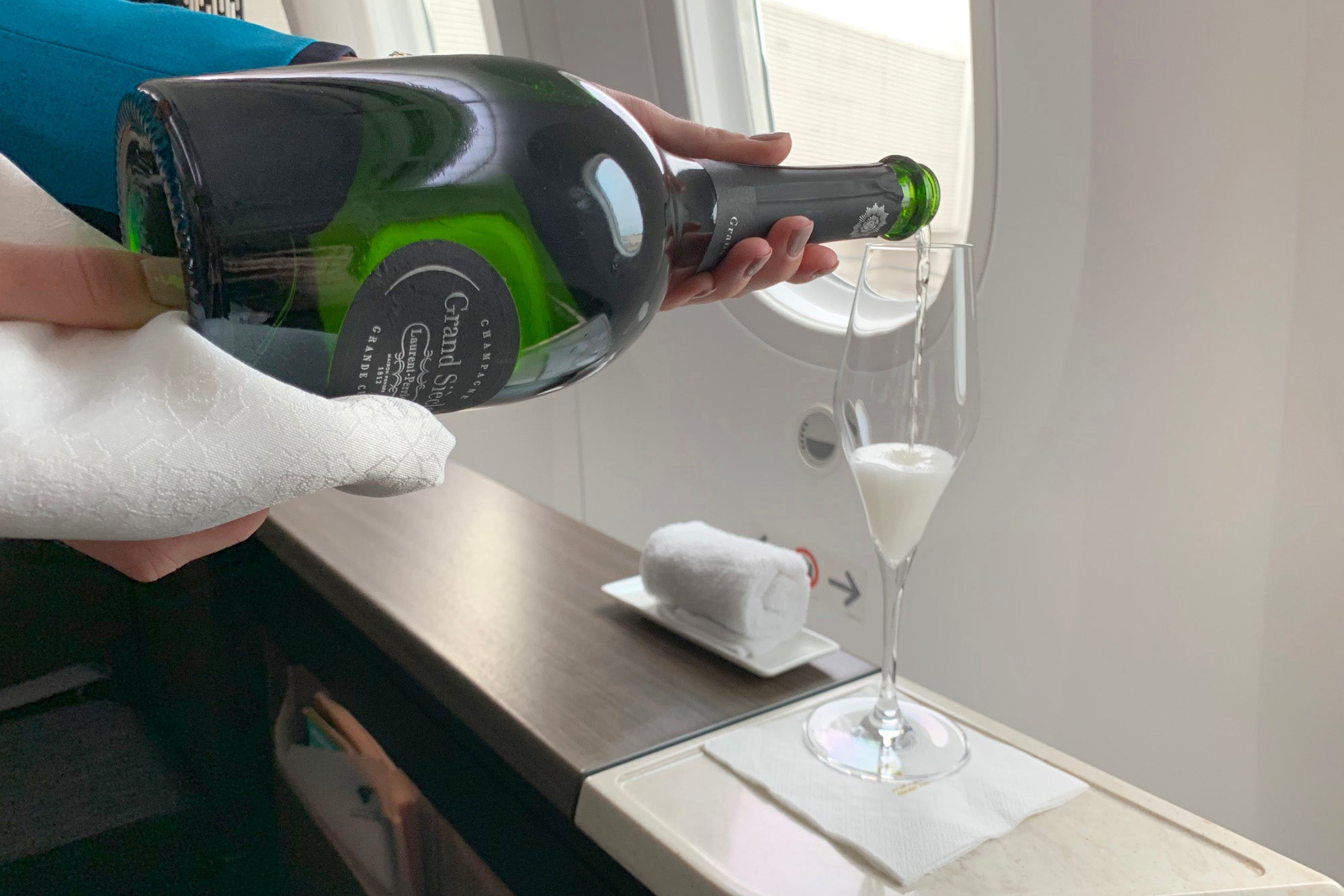 My glass of Laurent-Perrier Grand Siècle was accompanied by a towel and ramekin of nuts.
