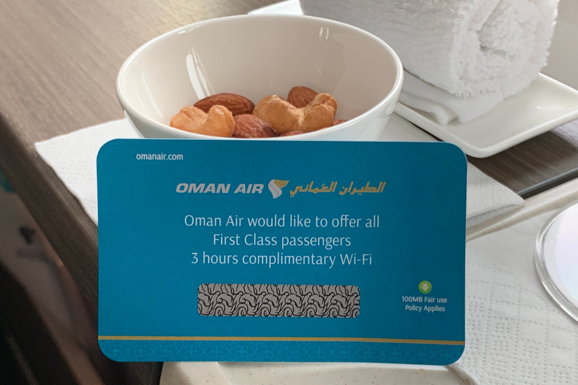 Oman Air offers on-demand dining, so you can eat whenever you like. I decided to get started shortly after takeoff.